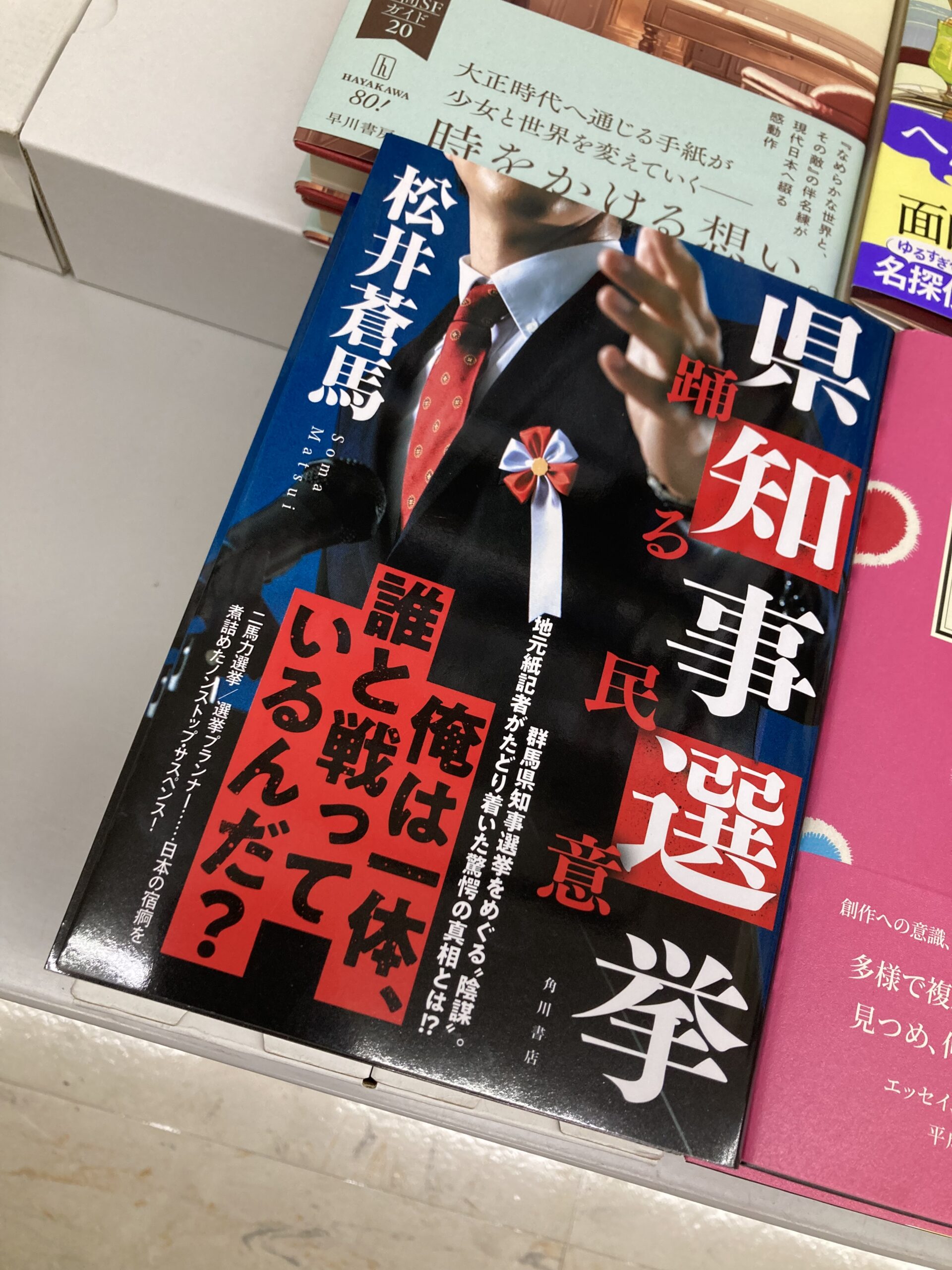 少し視界を広げるために資料収集に出かけたら、こんな本があった。ジャストミート?ビンゴ?タイムリー?かな、と思って少しめくってみたけど、あまり心惹かれなかったので買うのはやめておいた。しかし群馬か。犬猿の仲だった前橋と高崎が合併してできた「群馬市」の市長と県知事が揉めている、みたいなところから話は始まるようだった。前橋市長・・・うーむ。タイムリーなのか?(笑)