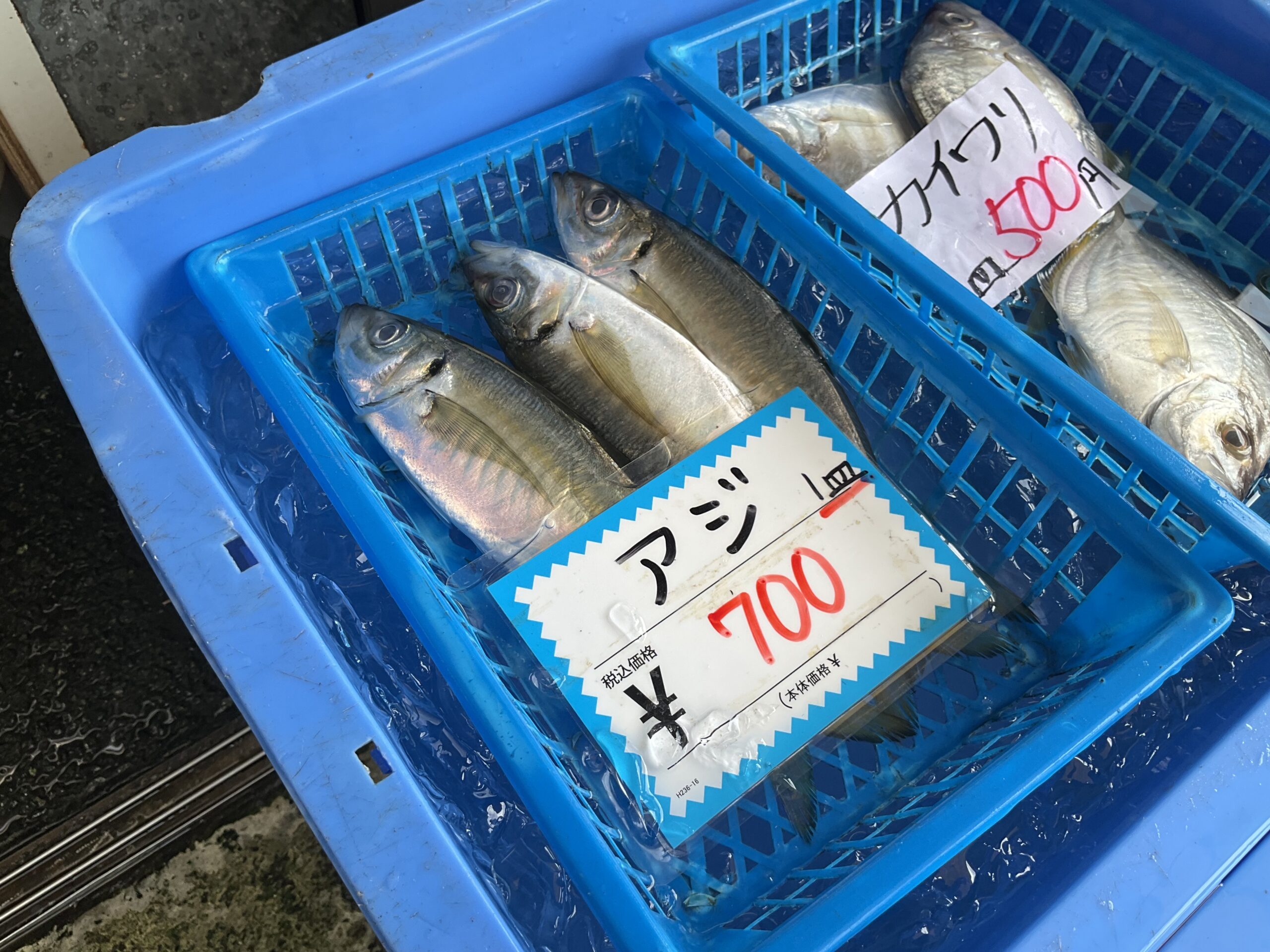 ちなみにこの日記を書いていて、気づいたけど、700円のアジの横にカイワリがいた。これは入荷の少ないとても美味しい魚。3匹500円、買えばよかった!