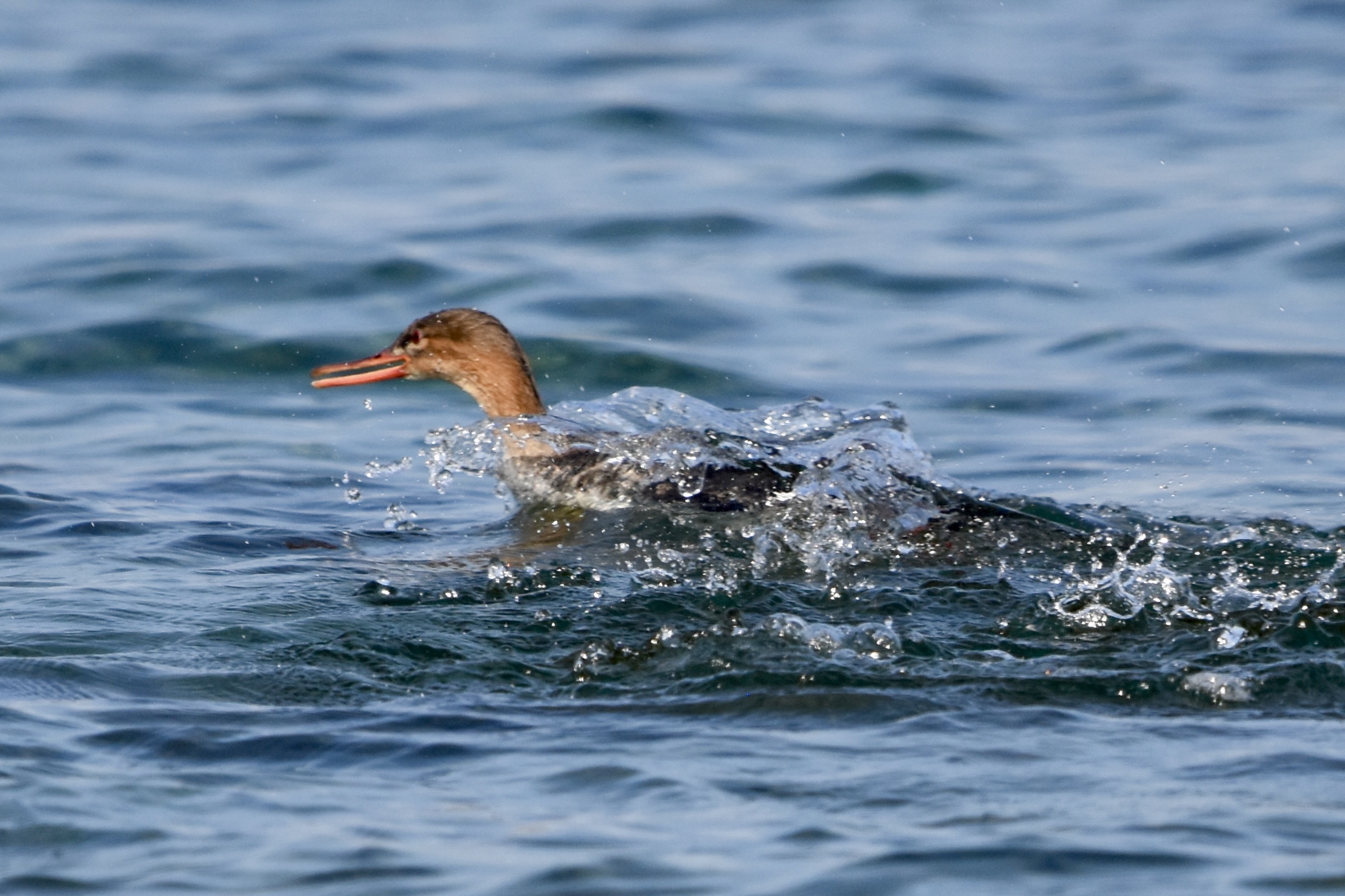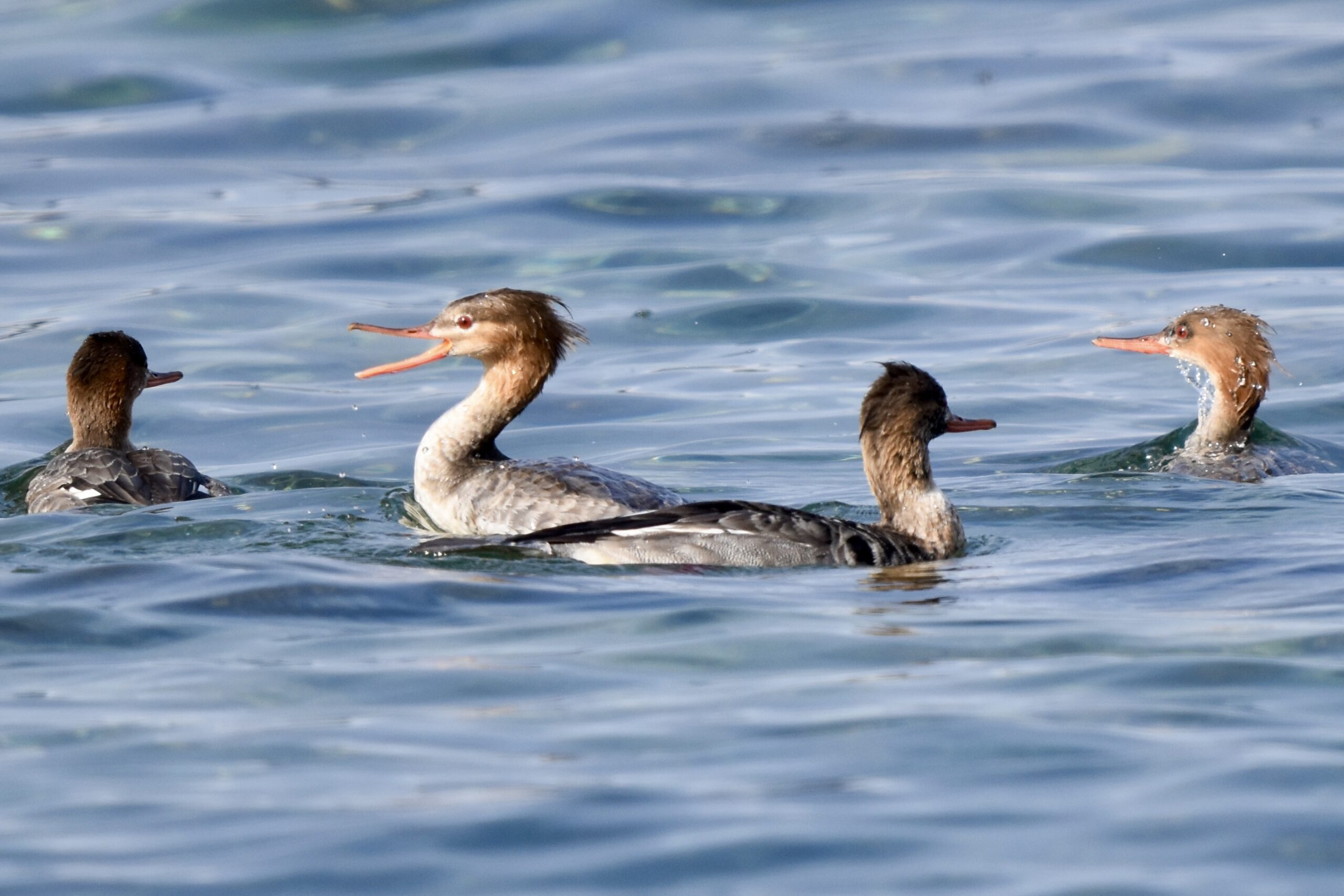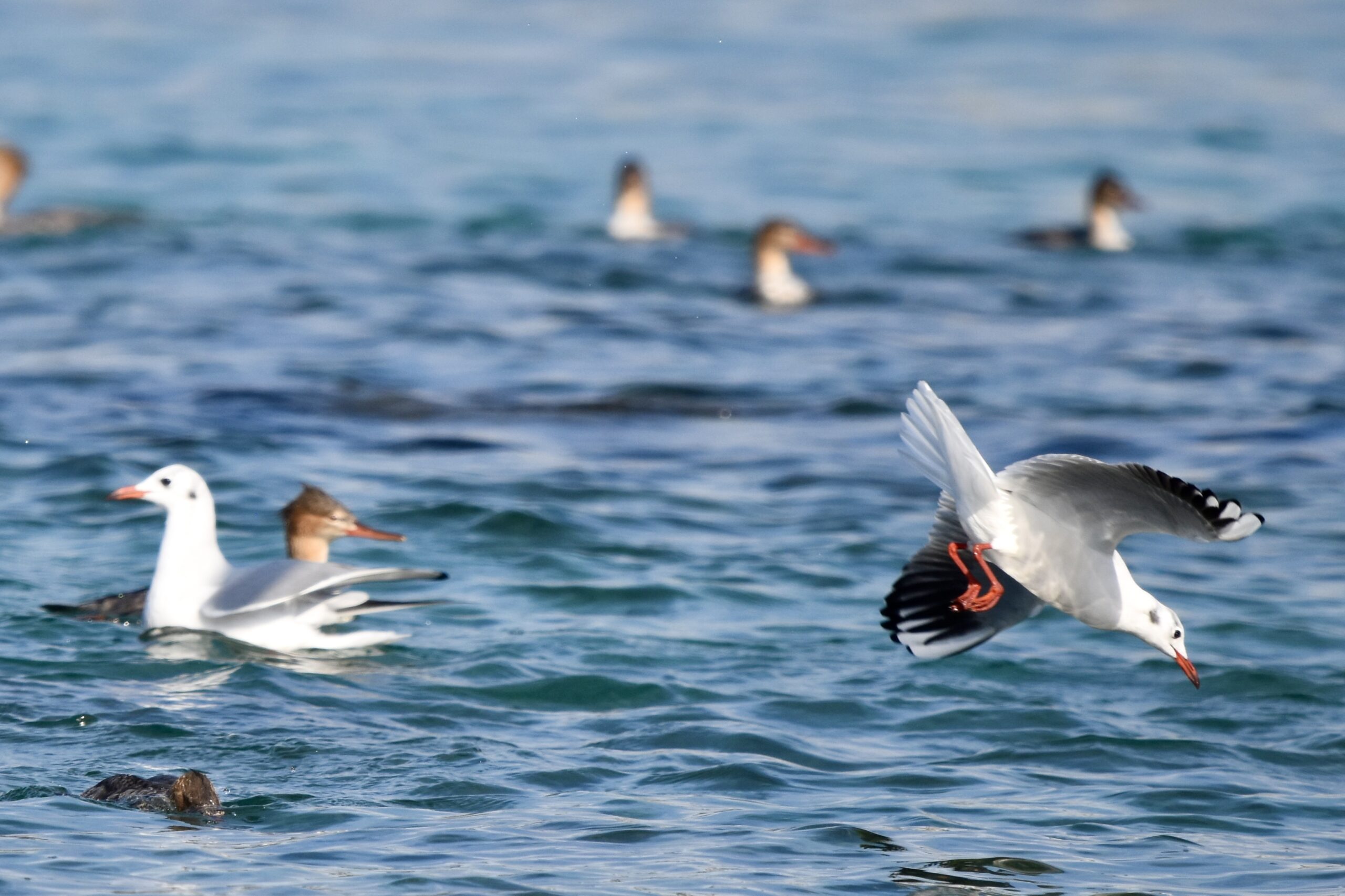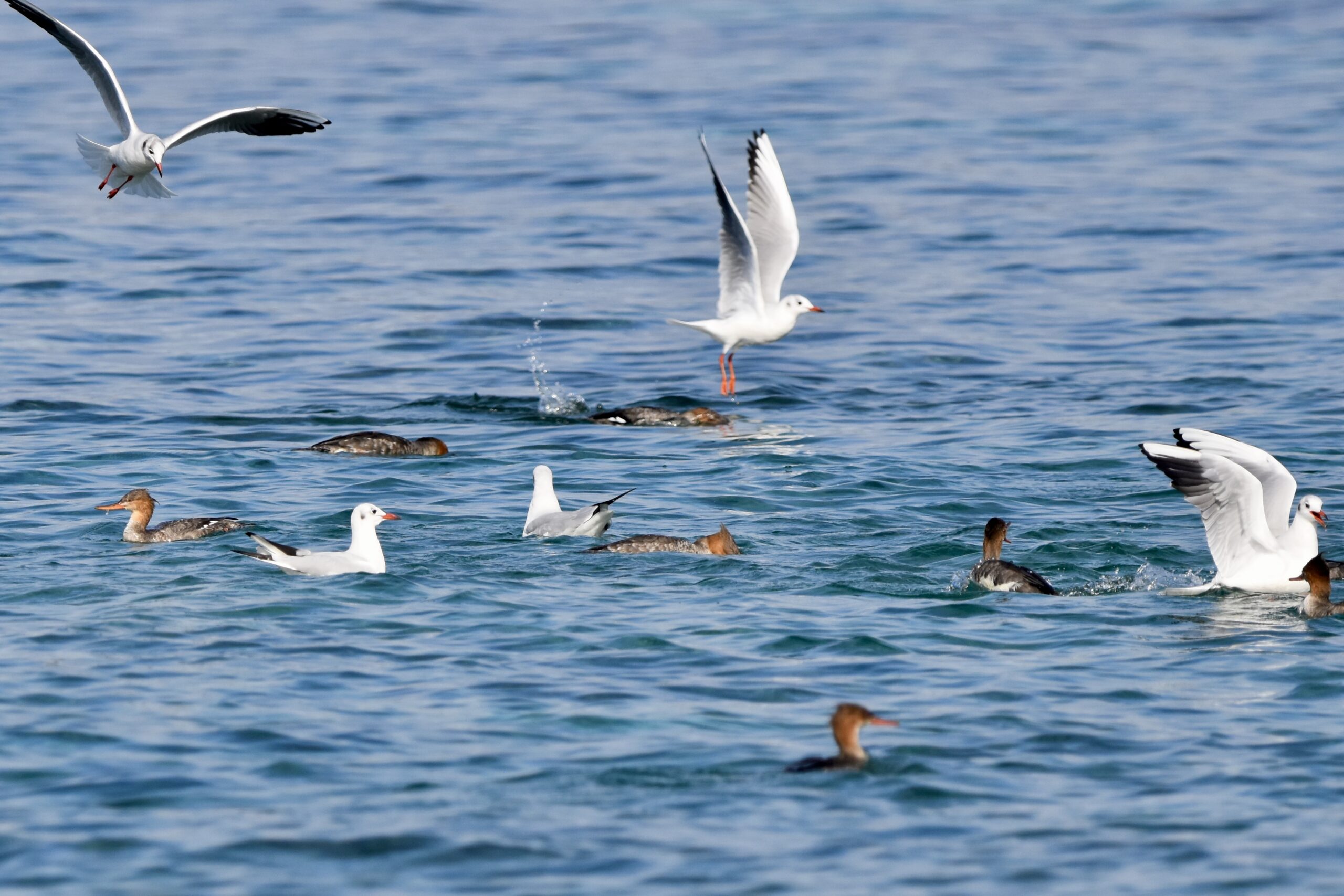 今朝も天気が良かったので、まずカメラを持ってバイクで海岸を流したところ、佐島まで行って、天神島臨海自然教育園の沖にウミアイサの大きな群れがいるのを発見。9時の開園と同時に入園して、浜でカメラを構えて待機。しばらくは沖合で魚を追っていた群れが待っていると岸に寄ってきてユリカモメも乱れ飛ぶ中、眼前で集団ハンティング。光も順光で絶好の撮影チャンス!しかし、撮っているうちに、当たり前の矛盾に気付く。ウミアイサとユリカモメが入り乱れて活発に魚を追っている躍動感あるシーンを狙っているのだけど、活発に餌を追うウミアイサは当然だけど、潜水しているわけで、気がつくと、ユリカモメだけが水上を飛んでいる写真になってしまう。(笑)そもそも被写体として静止画向きではなく、動画向きなのかも。今頃気づいて草。でもやはり鳥が近いと撮影と観察は楽しい。今日はおまけでクロサギも撮影できた。クロサギという名前だけど、色的にはそこまで黒くはない。海岸の磯にはどこでも普通に見られる鳥。
