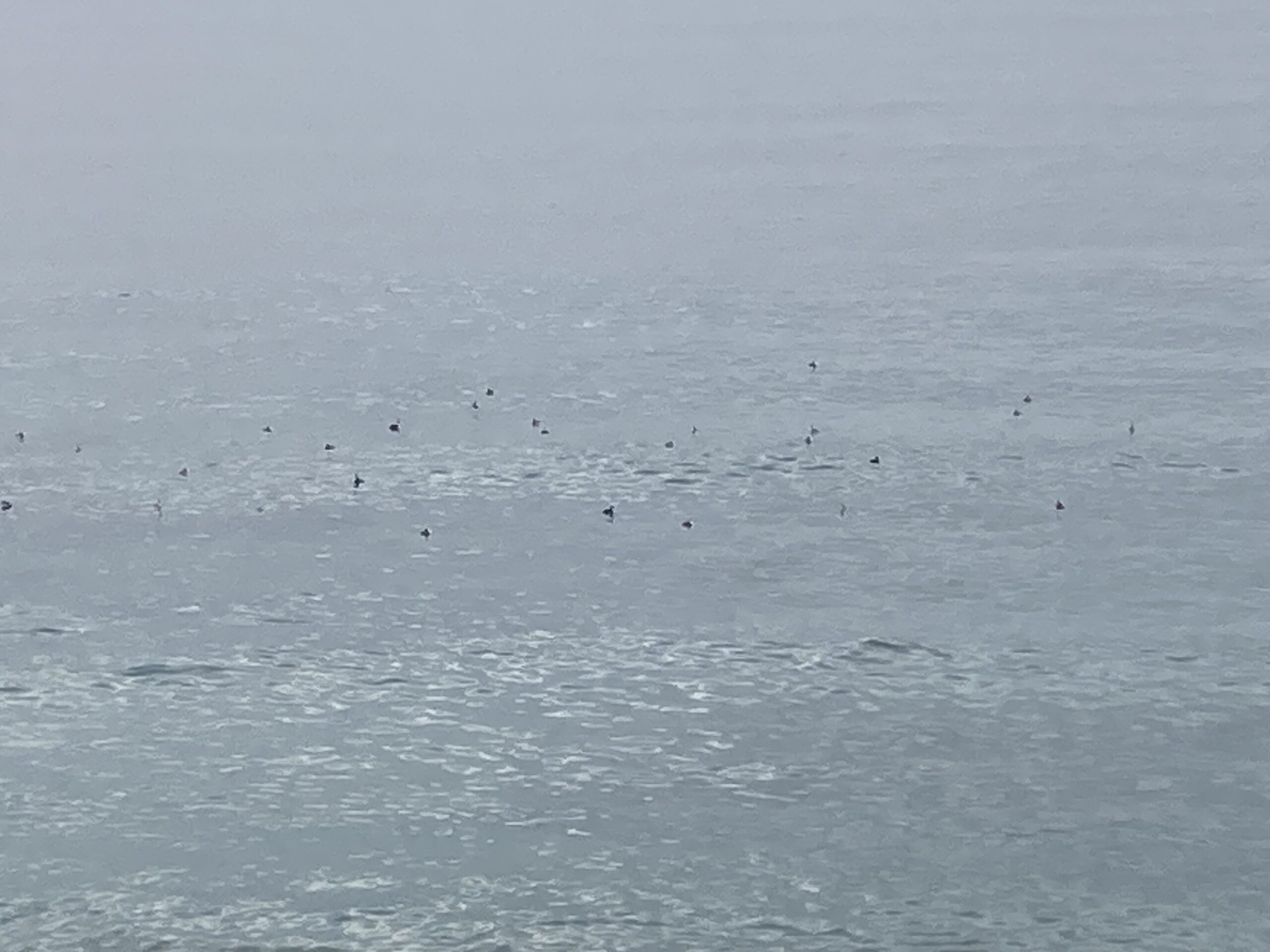 雨が上がってランニング。魚屋の詰め放題にシイラ。温かい海の魚がまだ定置網に入っているようだ。小アジもあるが、これはマアジより味が下のアオアジ。長者ヶ崎の南の浜にカンムリカイツブリの群れが今年も居付き始めた。数えると53羽。ウミアイサと違ってのんびり浮いてるだけで静か。