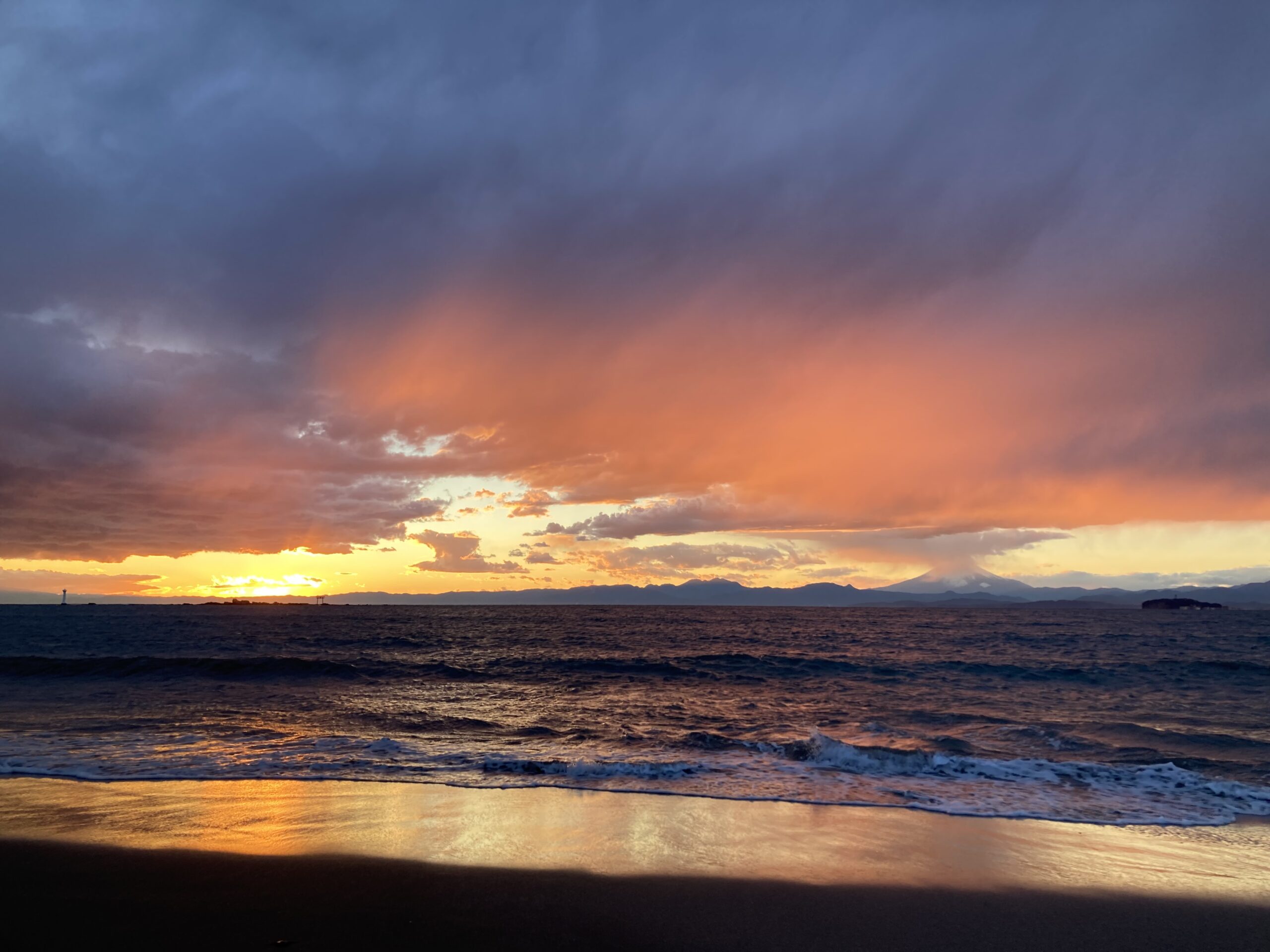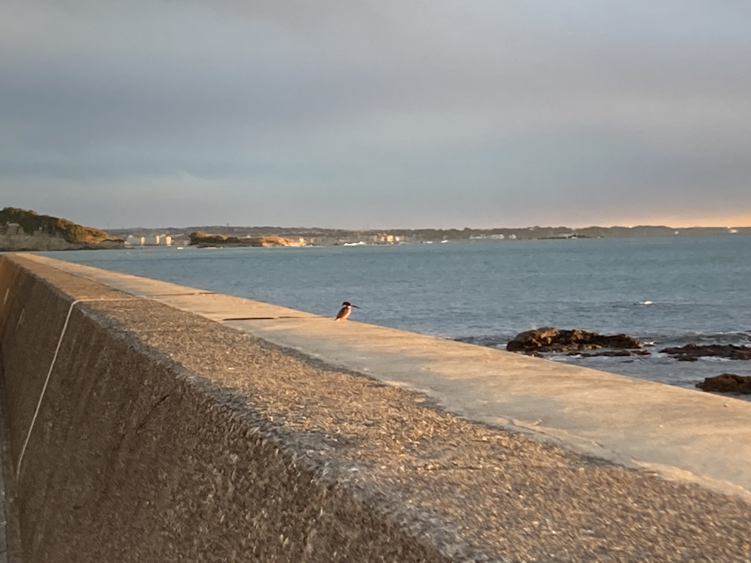 今日も妻は午後は仕事でフル回転。野球部から帰った双子は慌ただしく昼食を食べて塾へ。私は洗濯機の洗濯槽を掃除したり。夕食の準備の前にようやくランニング。西の低い空だけ雲が切れているので、日没直前、太陽が出るだろうと走っていたら、まさにその通りになった。カワセミが夕日に照らされて海を見ていた。こういう日は、太陽が沈んだ後の方が雲が赤く照らされてドラマチックな光景になりがち。