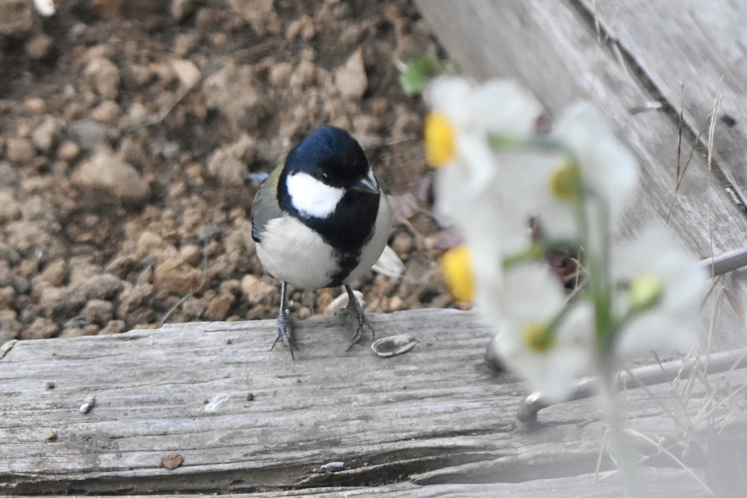 年末に設置した庭の餌台。朝、鳥たちの待ち構えっぷりがすごい。餌を乗せて背を向けると、もうキジバトが飛んできている。餌台では大きいキジバトがスズメに対して優勢。シジュウカラはヒマワリの種を素早く取って、安全な離れた場所で、足で押さえて嘴で殻を割って中身を食べる。