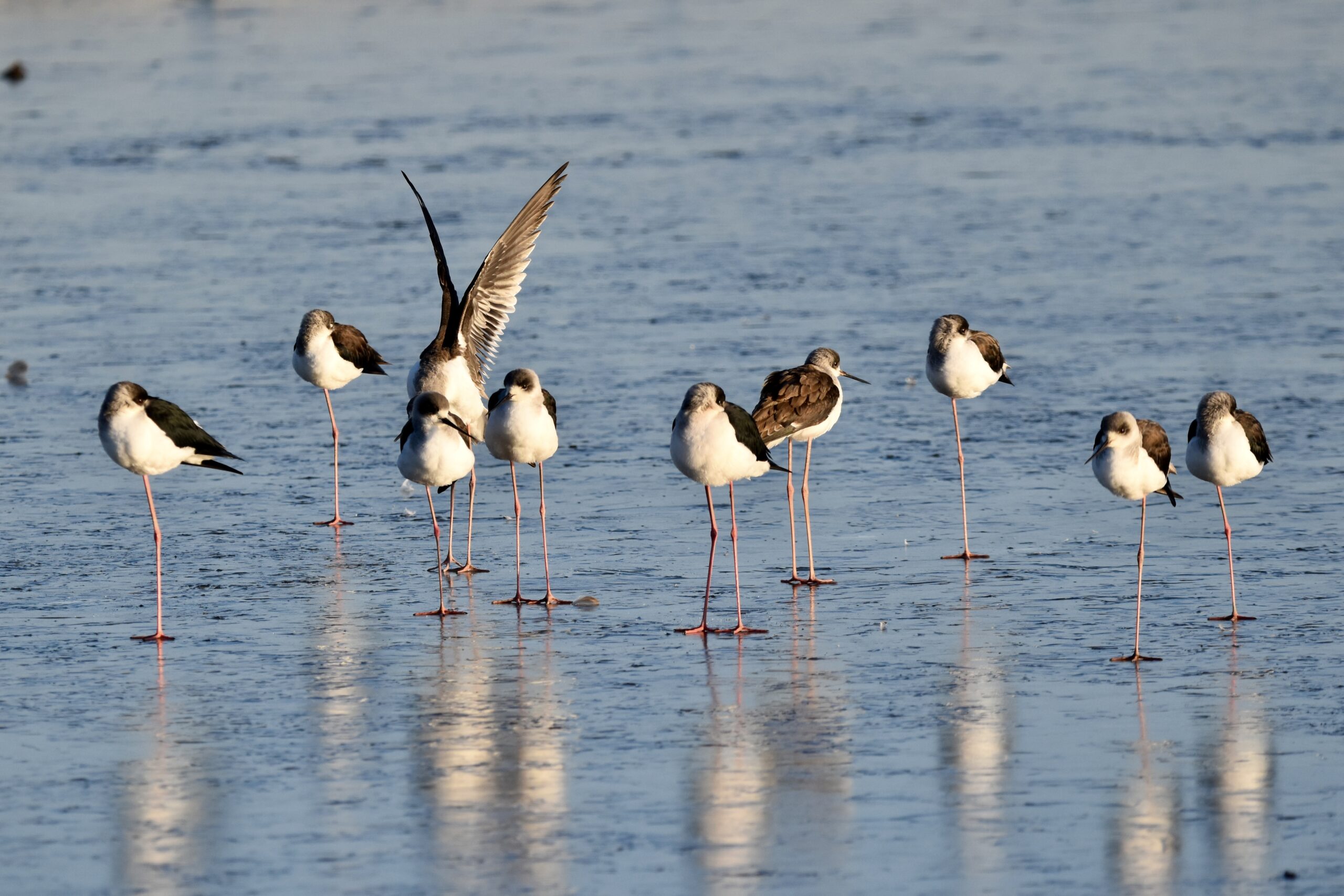 霞ヶ浦の周りはレンコンの栽培が盛んで、その蓮田がシギの仲間の観察ポイントらしいのだけど、今朝は凍っていた。そして凍った蓮田でセイタカシギが休んでいた。