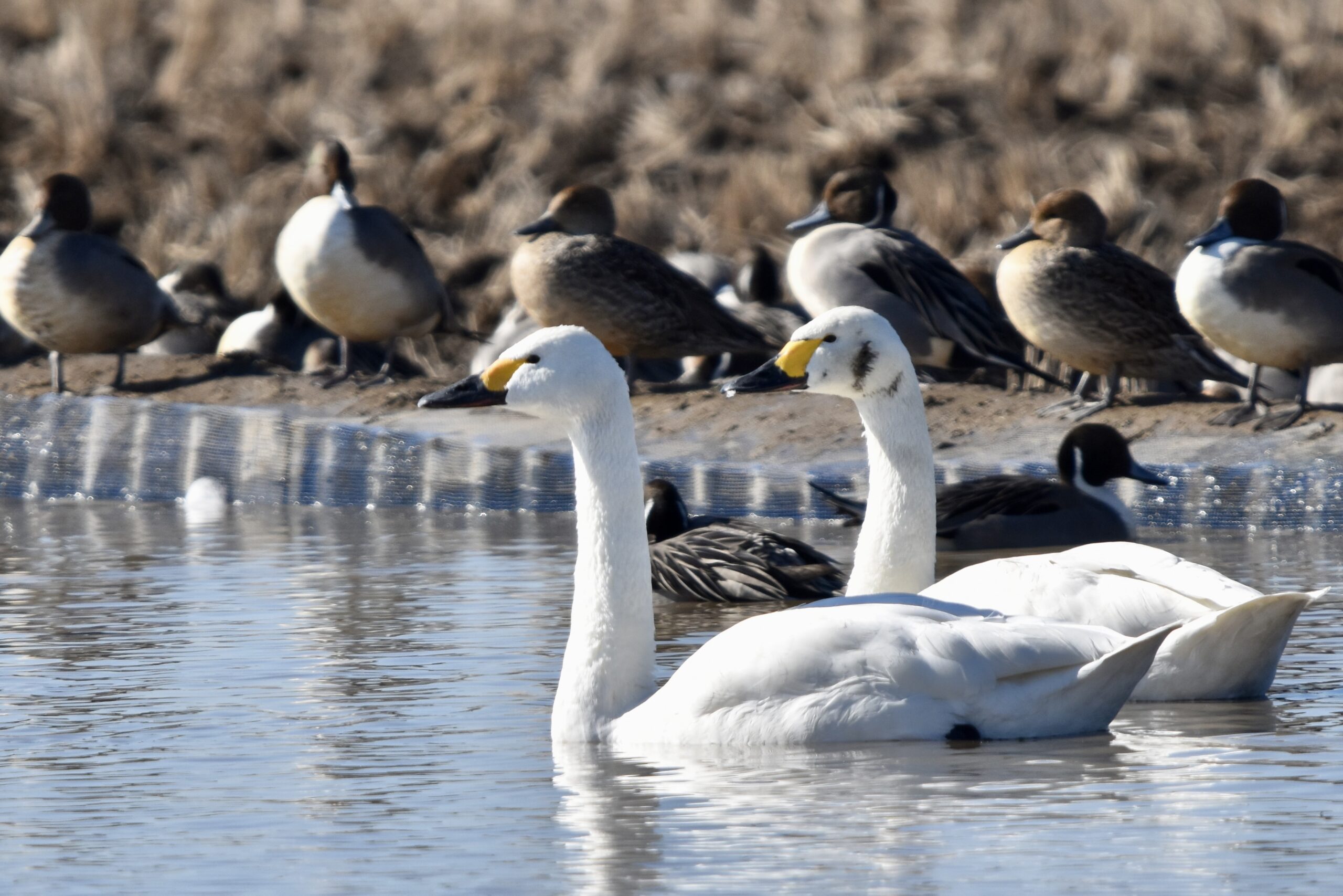 稲敷を堪能したので、昨日雨だった印旛沼のリベンジに向かう。でもその前に、トコさんが教えてくれた白鳥の郷へ。印西市なので印旛沼のすぐ近くだ。千葉県にハクチョウの飛来地があるとは知らなかった。トコさん、ありがとう!平成4年からということなので、比較的新しい。関東では最南だろう。オオハクチョウとコハクチョウ、両方がいたが、コハクチョウの方が多いらしい。今期は500羽以上来ているらしい。ハクチョウたちは鳴き交わしながら飛び立って餌を探しに行っていた。あとで印旛沼に向かう際に田んぼにハクチョウが降りているところがないか、気をつけていたけど、見られなかった。500羽くらいが分散すると、そう簡単には見つからないようだ。逆にいうと、千葉とか茨城の農耕地帯の面積は莫大で、もっともっとハクチョウやガンが越冬できるポテンシャルがあると思う。東北のように、そこらここらでハクチョウやガンが見られるようになると、楽しい。