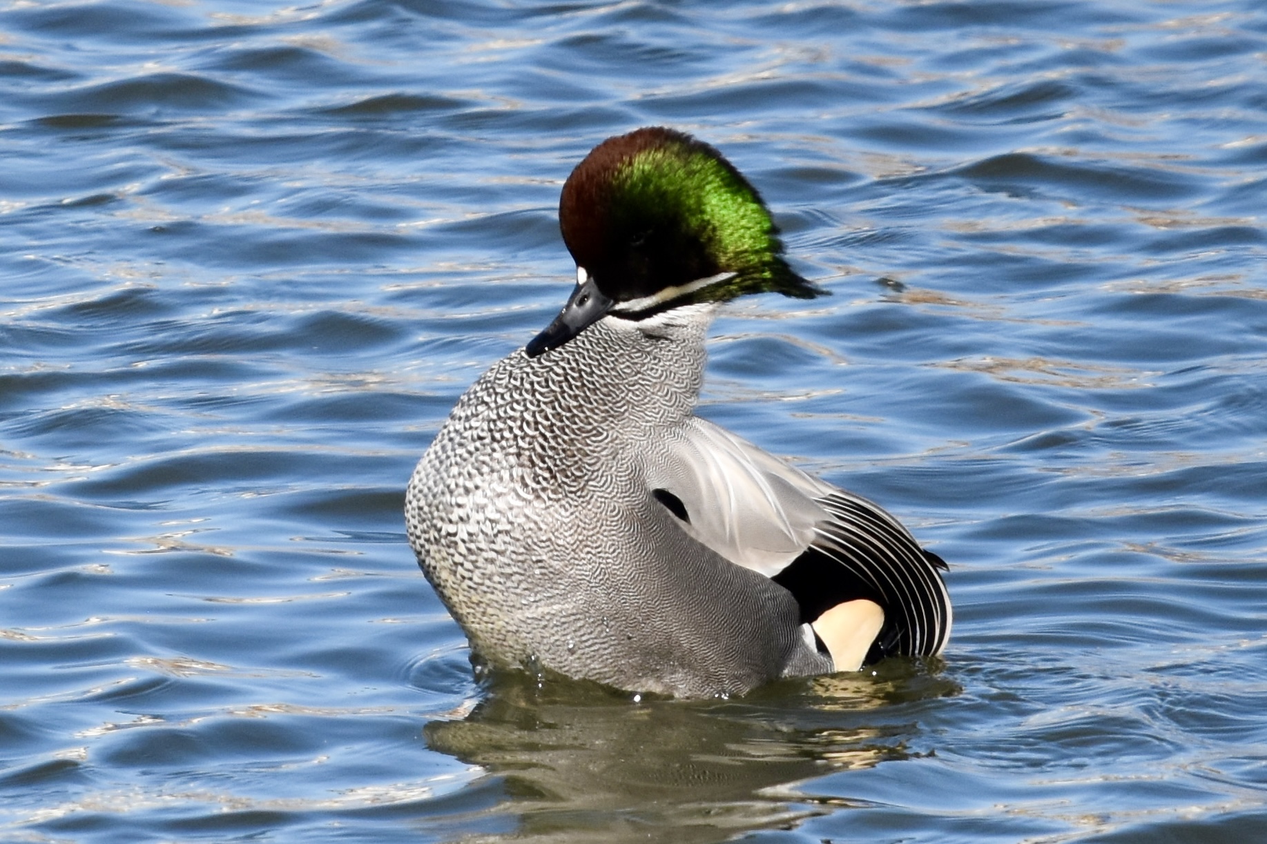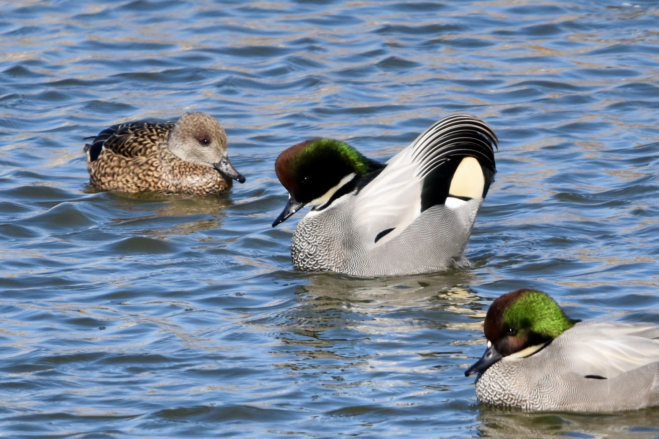 こちらはヨシガモというカモ。オスがメスにアピールする独特のポーズをとるディスプレイを盛んにやっていた。オスの頭の緑色がきれいに出るようにそれを写すのが結構難しいけど、楽しい。