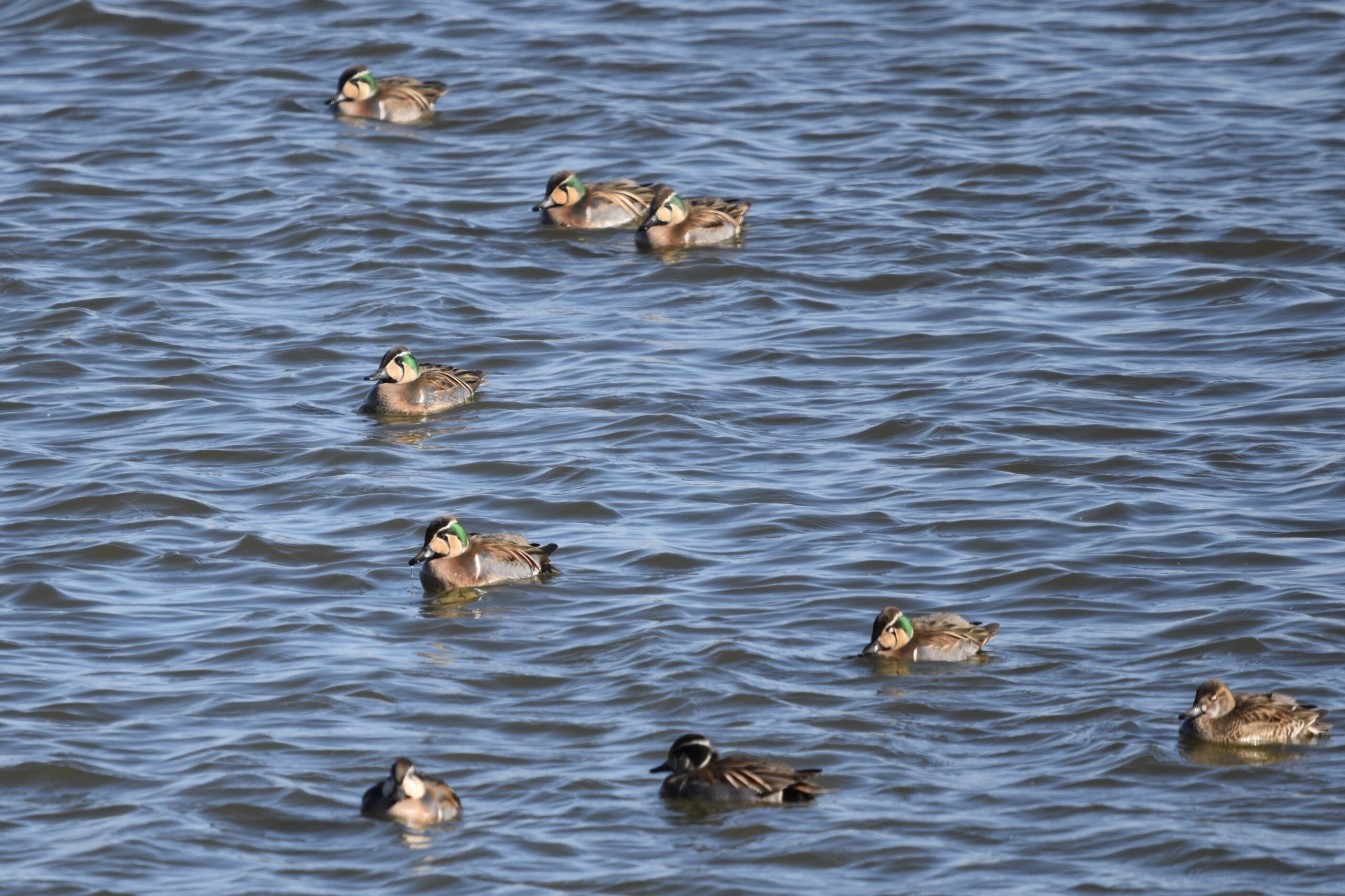そして印旛沼。昨日の冷たい雨とは一変して、快晴。風は強くて寒いけど、絶好の観察日和。特に今日はトモエガモの大群が近くに寄っていてなかなかの迫力。よろしければ、動画もぜひ。冬に見られるカモの仲間は、マガモ、コガモ、オナガガモ、ヨシガモ、オカヨシガモ、ホシハジロなど、色々あるのだけど、トモエガモは、他のカモと明らかに群れとしての行動原理が違う。大群を作りたがり、群れ行動という感じ。昔から普通に図鑑に記載されていたカモなんだけど、私が子どもの頃は、特に関東では激レアなカモで、1羽現れた!というのを、大慌てで見に行った記憶がある。関西以西ではそれなりにまとまった数が見られるポイントがあったのだけど、結構限定的。ただ一方で昔から韓国では数十万羽の大群が見られることが知られていた。その映像はBBCのアッテンボローのドキュメンタリーで見たことがある。日本で見るのと、全然違うなー、と思っていたのだけど、近年、そういう大群が日本でも見られるようになってきたのだ。その名所が関東だと印旛沼。名前の由来はオスの顔の模様が巴のようだから。