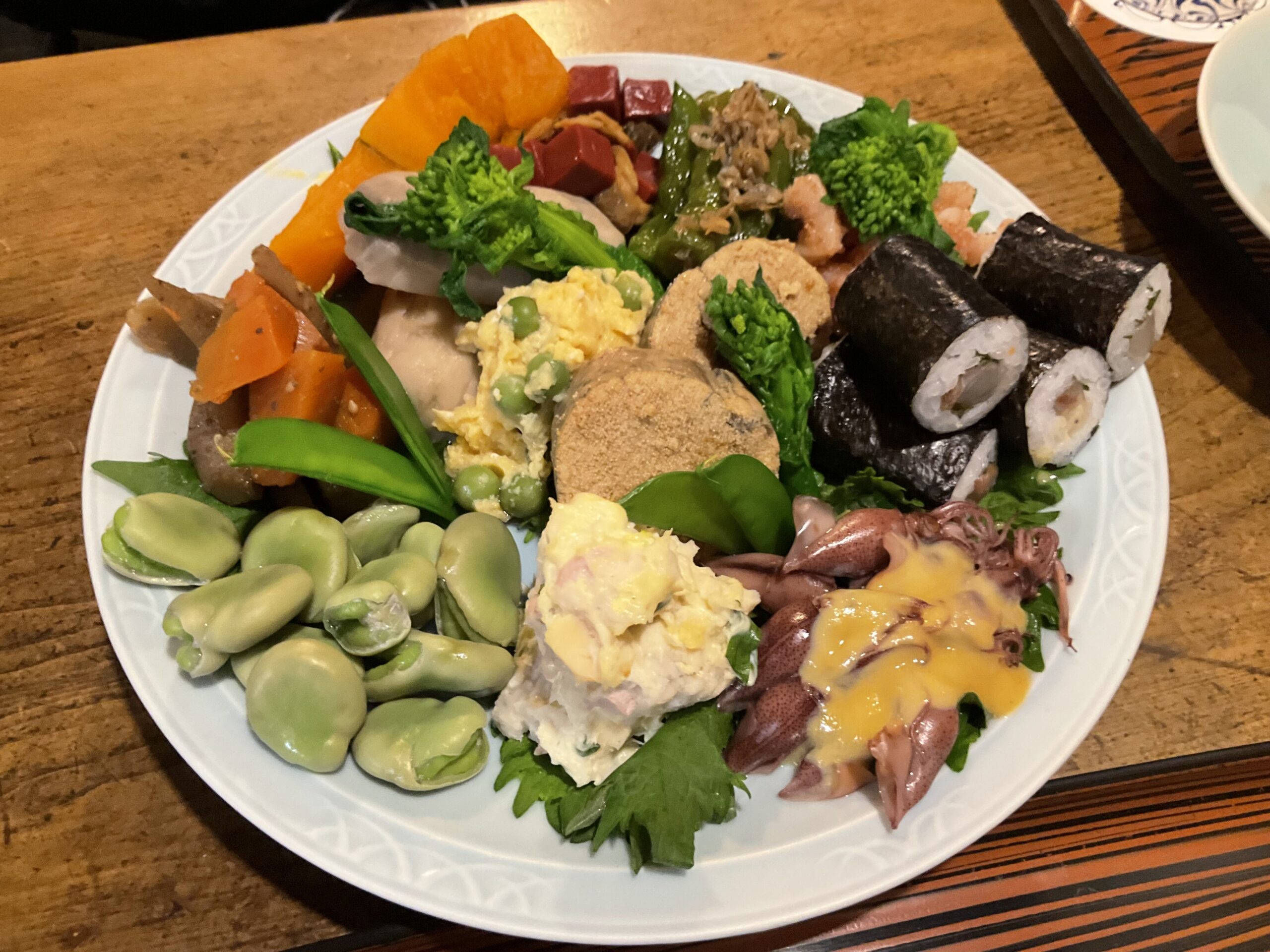 件のおばんざい屋さんはおばあちゃんが二人でやっている店。一見ではちょっと入れないかな。こちらも久しぶりの同期女史。しばらく前に病気をして今は酒は止められているらしい。お大事にしてほしい。それにも関わらず付き合ってくれてありがたい。おばんざいはどれも優しい味で美味しかった。