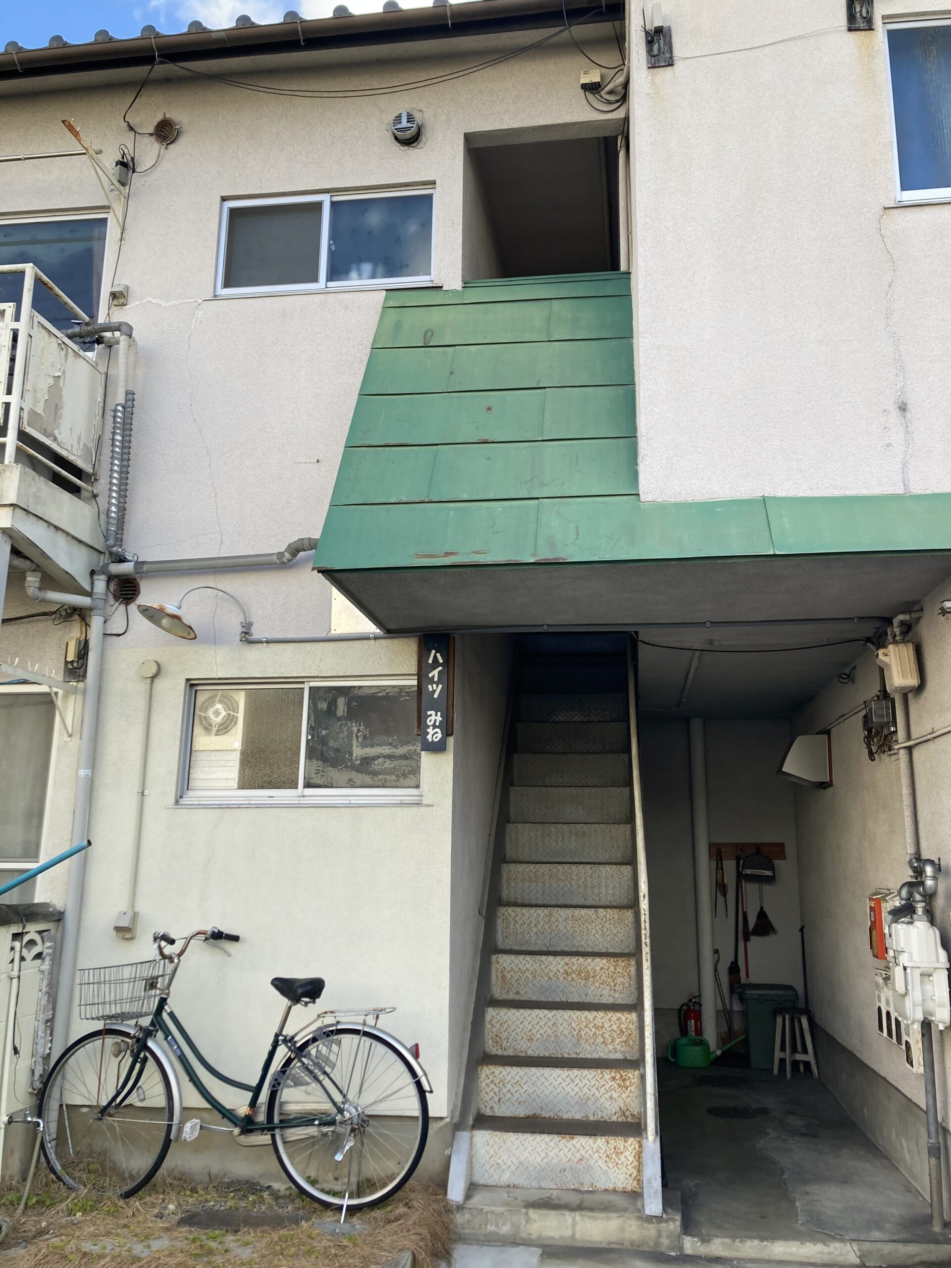 この狭くて急な階段を上がったところが私の部屋だった。建物はボロいけど、東側が開けていて日当たりが良い、快適な部屋だった。今はどんな人が住んでいるのか?