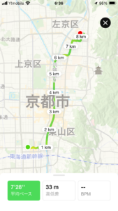 京都駅近くのホテルからここまで8.6キロ。走って帰るのはちょっとしんどいし時間もかかる。こういう時は電車、バス、地下鉄で帰ってしまえば良いのである。出張ランニングのライフハックというやつだ。(笑)今時、Suica一枚持ってれば大丈夫。