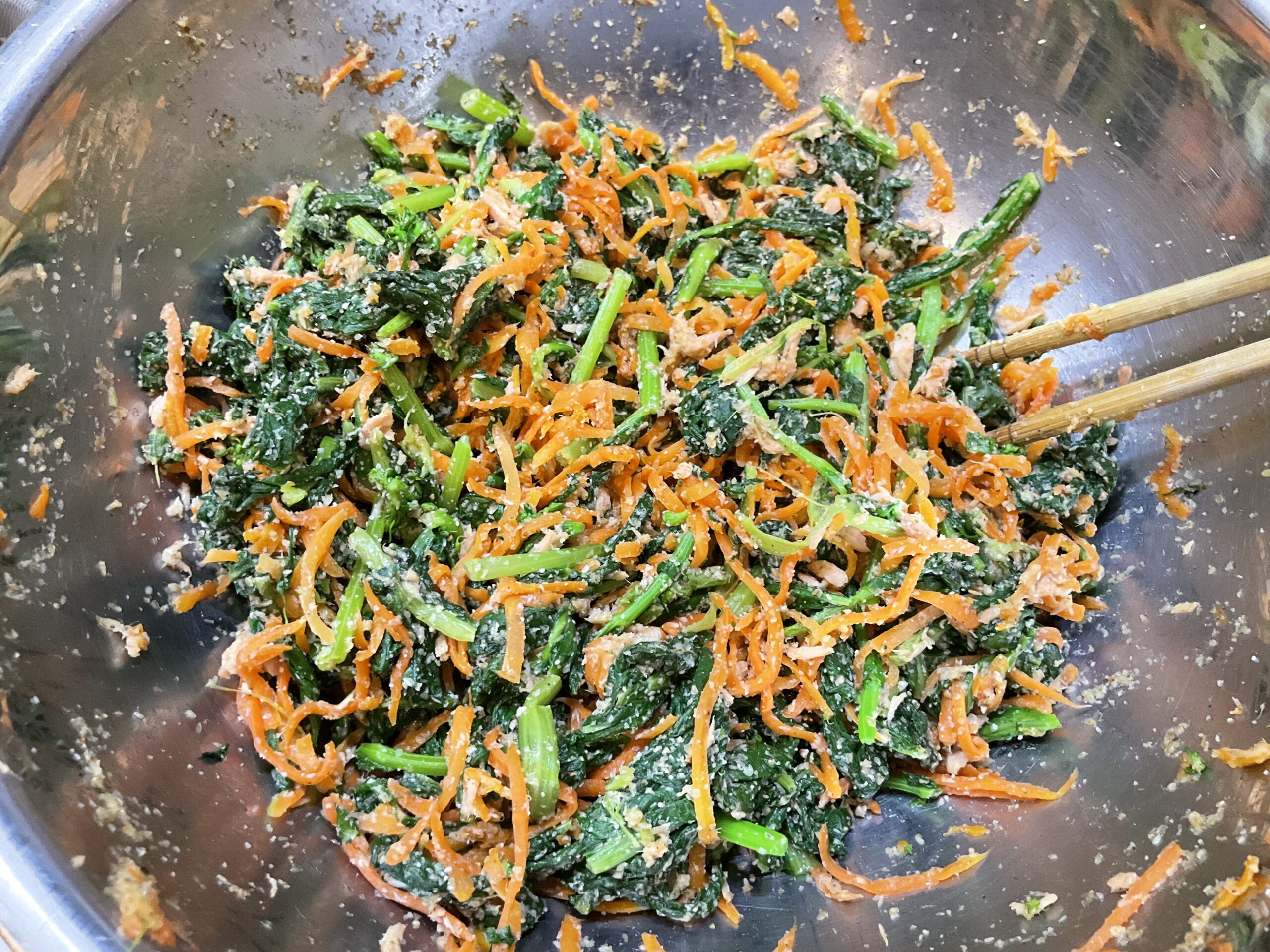 茹でておいたら、妻がいい感じの胡麻和えにしてくれた。さすがプロ。