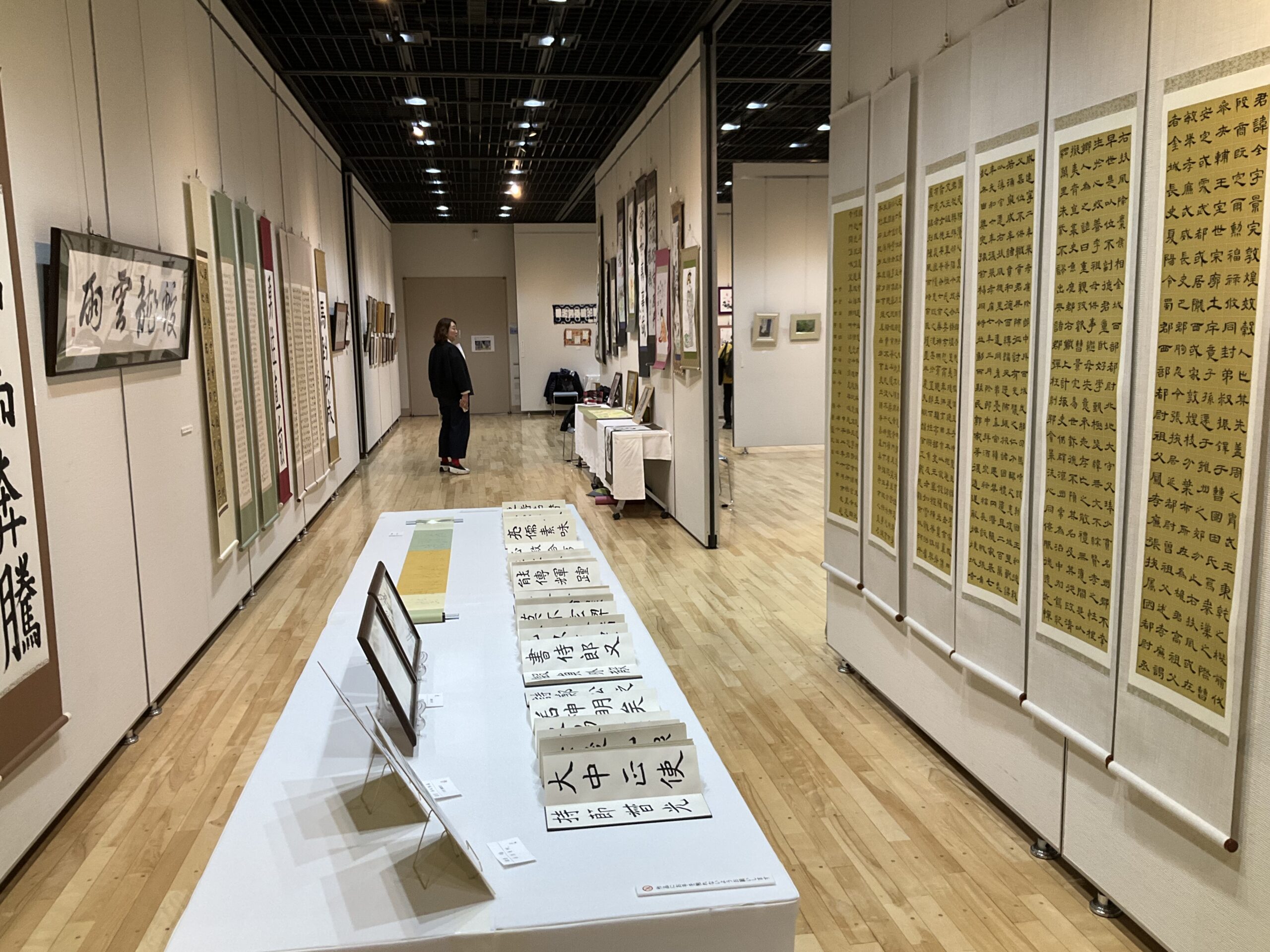 月島の妻の書はまたお見事。私にこういうものは書けない。ただ聞くと、出展している中に高校生の男の子とか、20代の女性とか、若い人も結構いるそうな。これまた知らない世界だ。