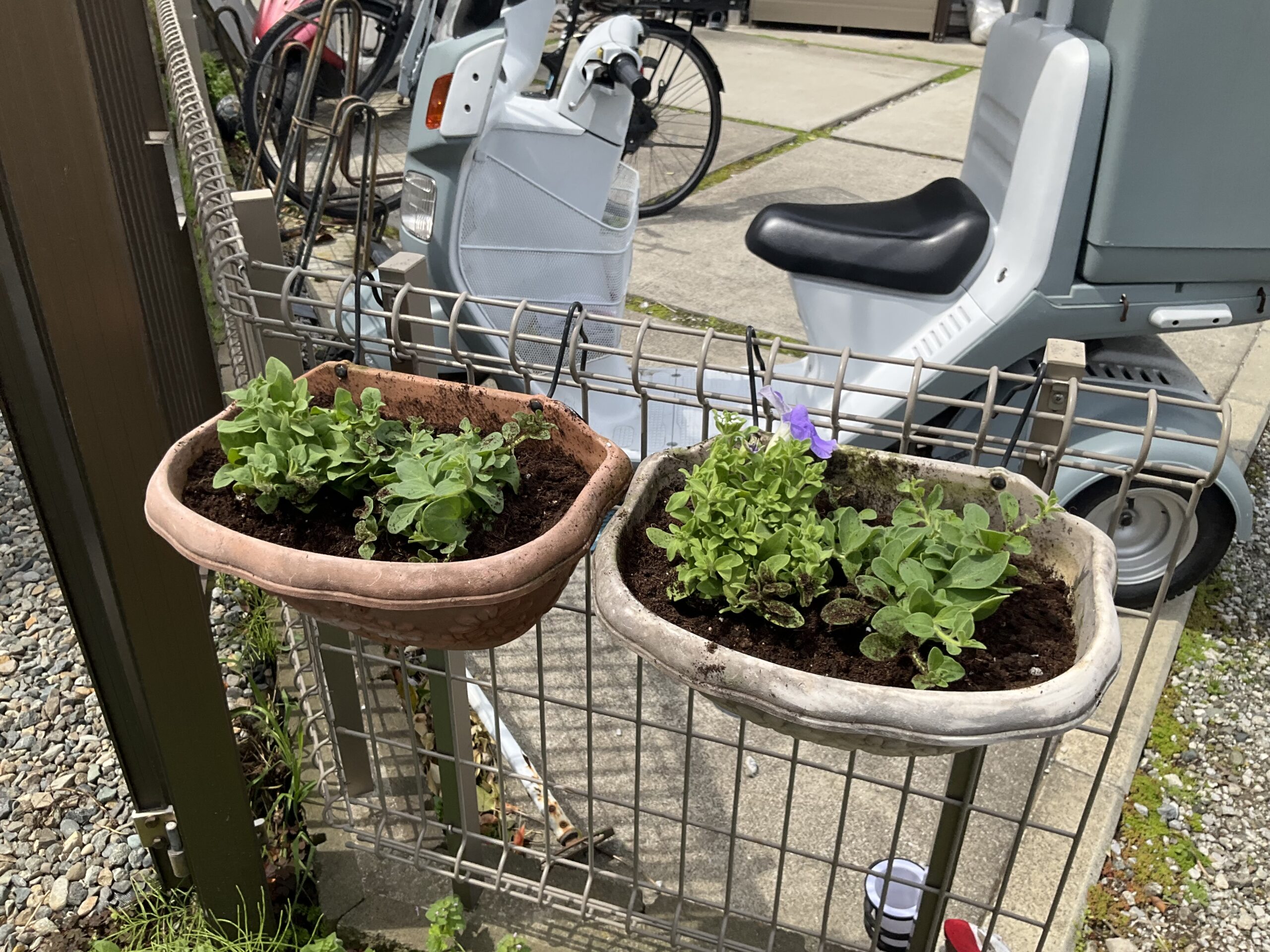 そして今年もサフィニアの苗を買ったのでこれも植え付け。毎年ワンパターンだけど、4月に植えて12月まで咲く花は楽だ。家の前に派手な花を飾るのは、割れ窓理論的な防犯やポイ捨て防止の効果があると思っている。