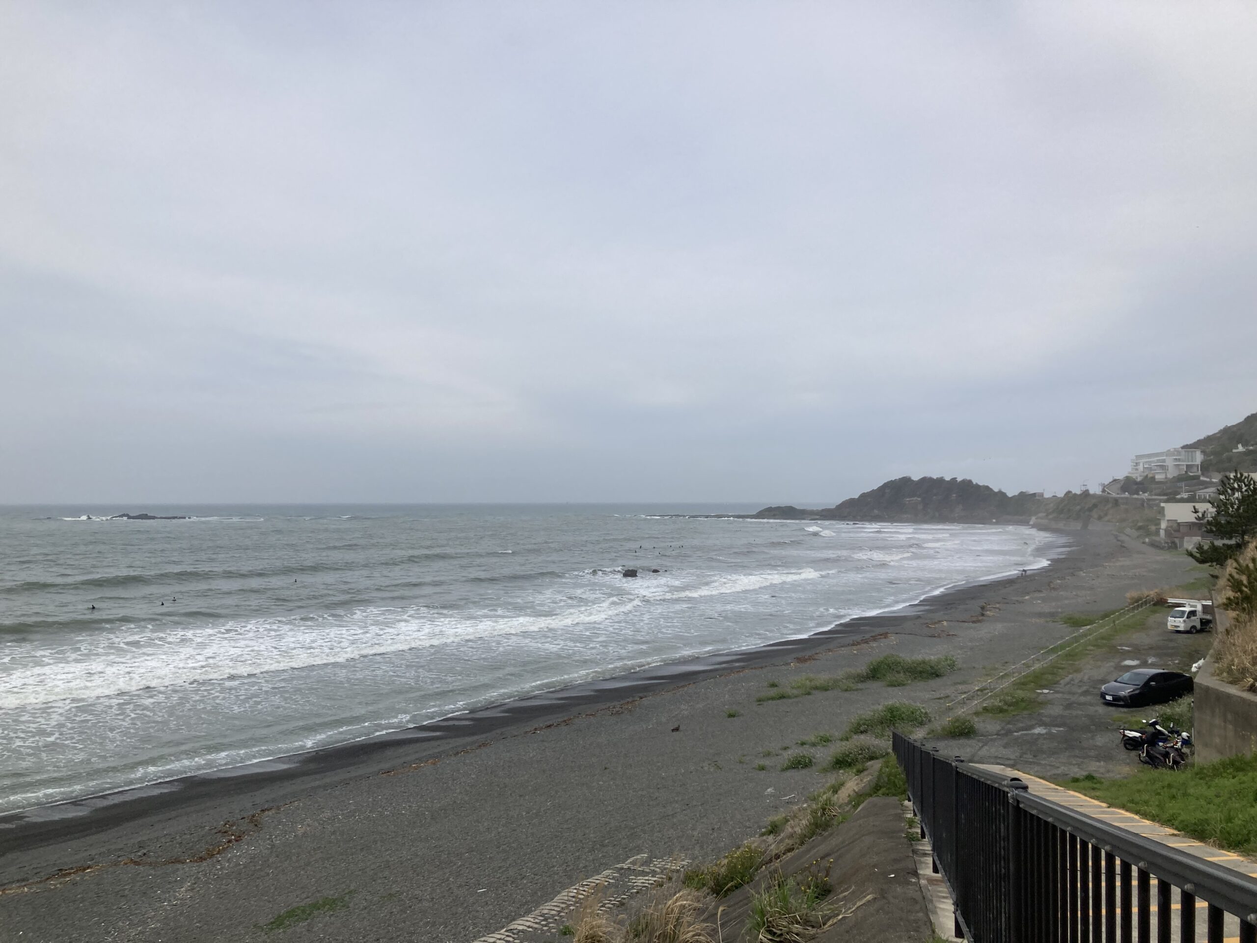 予報は晴れだったと思うけど、晴れ間が出ず、霧のような雲がずっとかかる日曜日。ここ数日、海はずっと荒れていて今日もサーファー発生中。漁に出られないのか、佐島の魚屋の店頭はスカスカ。