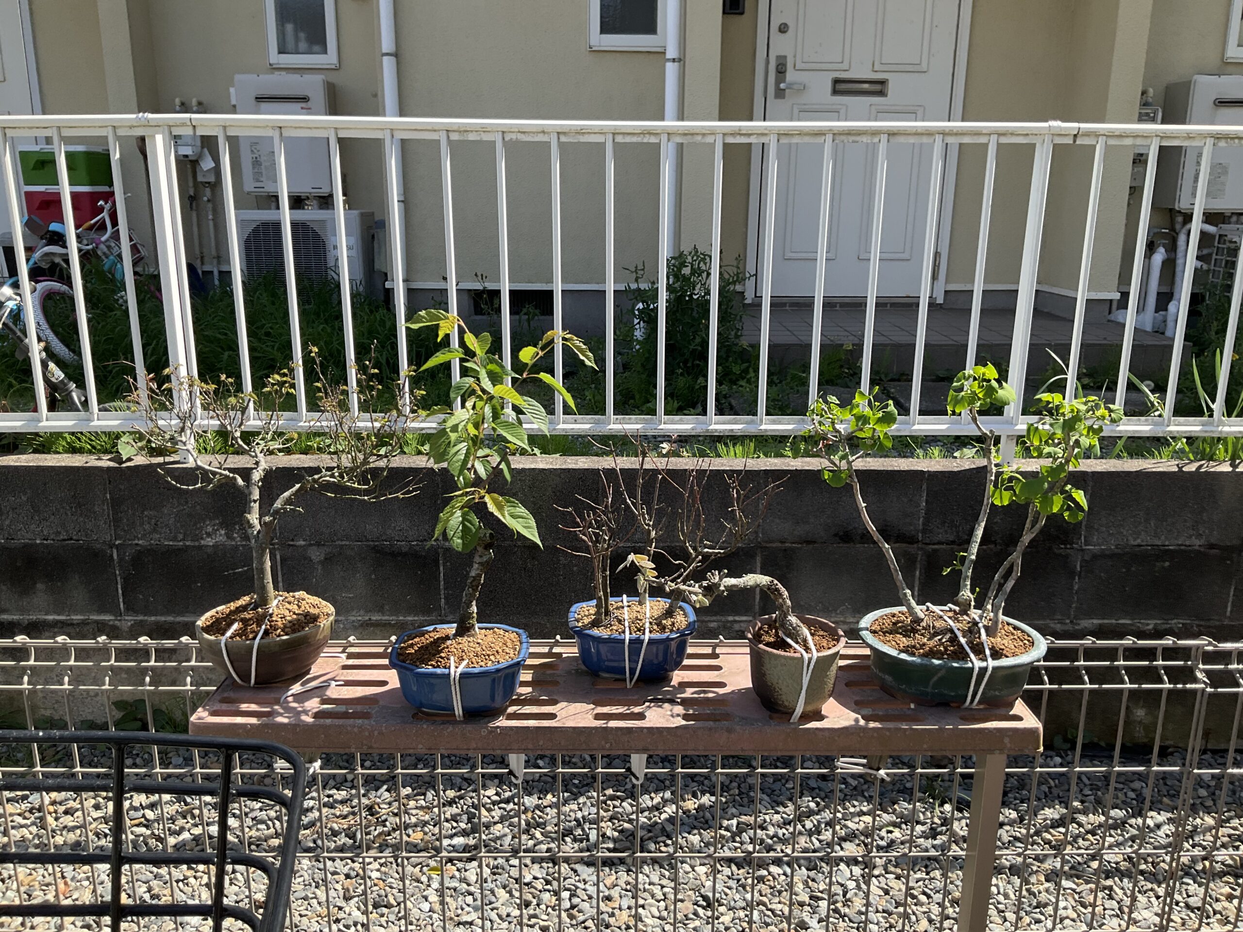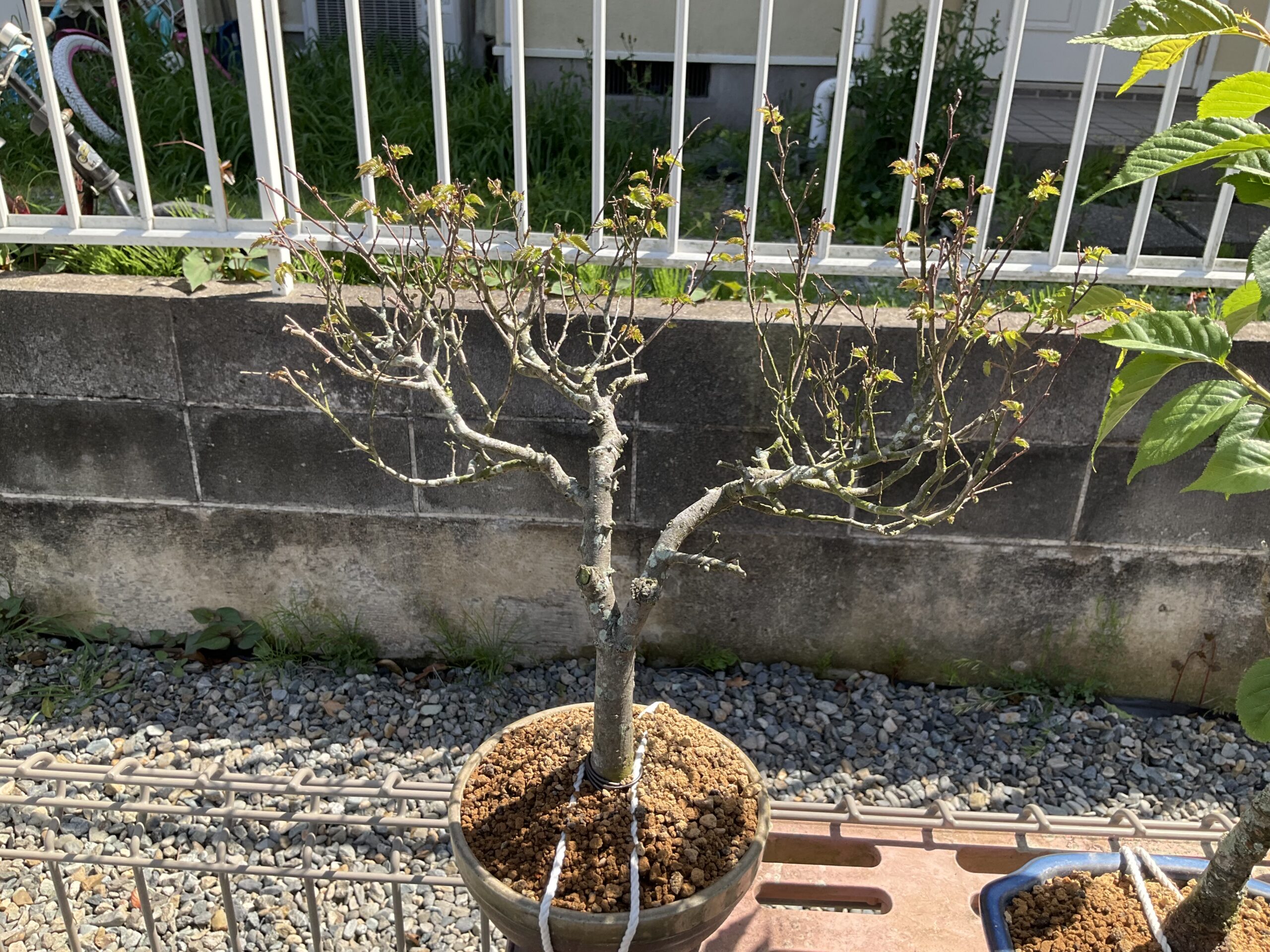 植え替えをした盆栽は皆、順調に芽吹いてきた。ちなみにケヤキは、かきぬまさんが行かれている広尾の日赤病院に生えてるケヤキの種を拾ってきて、発芽させて育てたもの。もう20年くらいになるのかな?