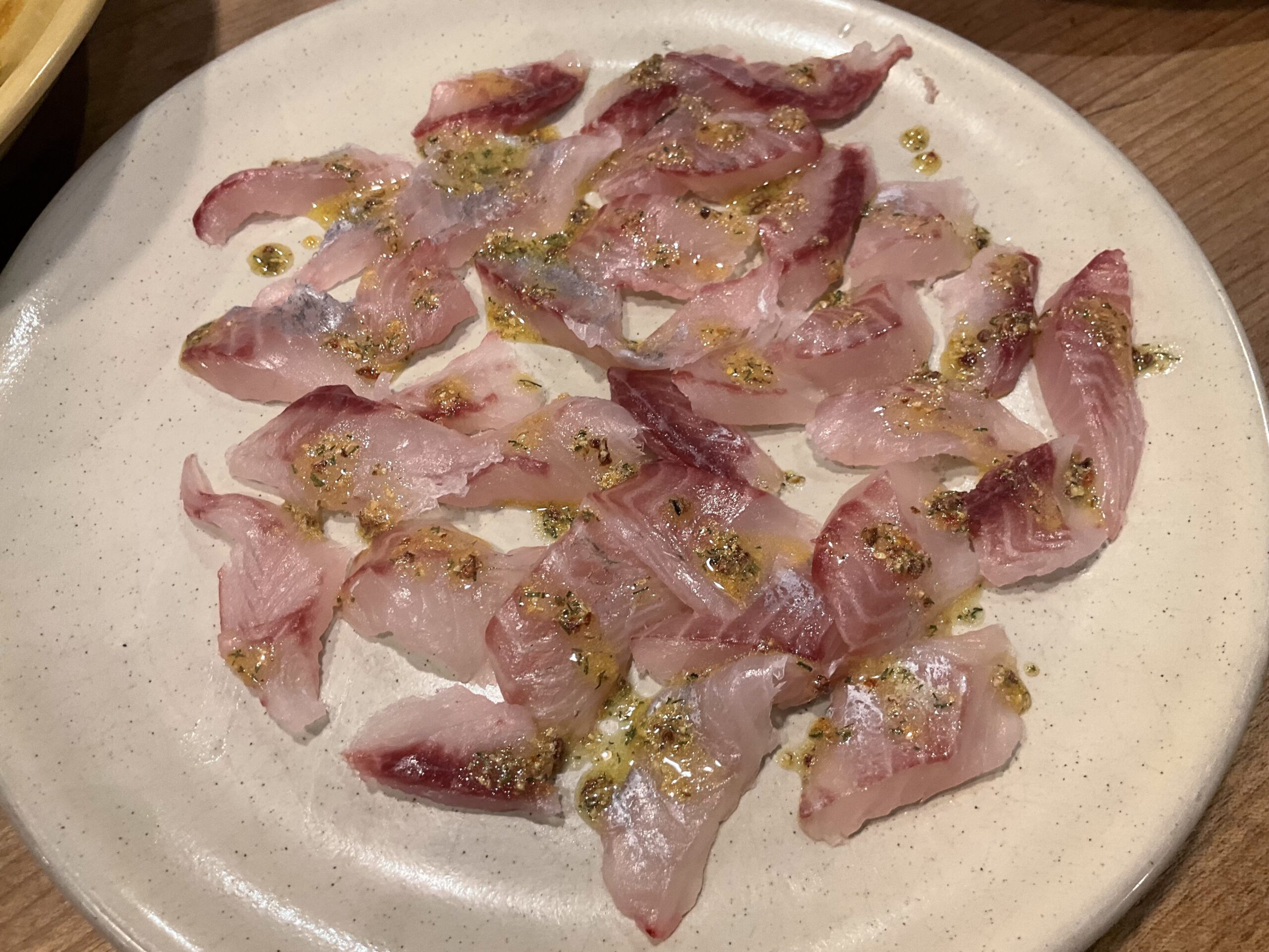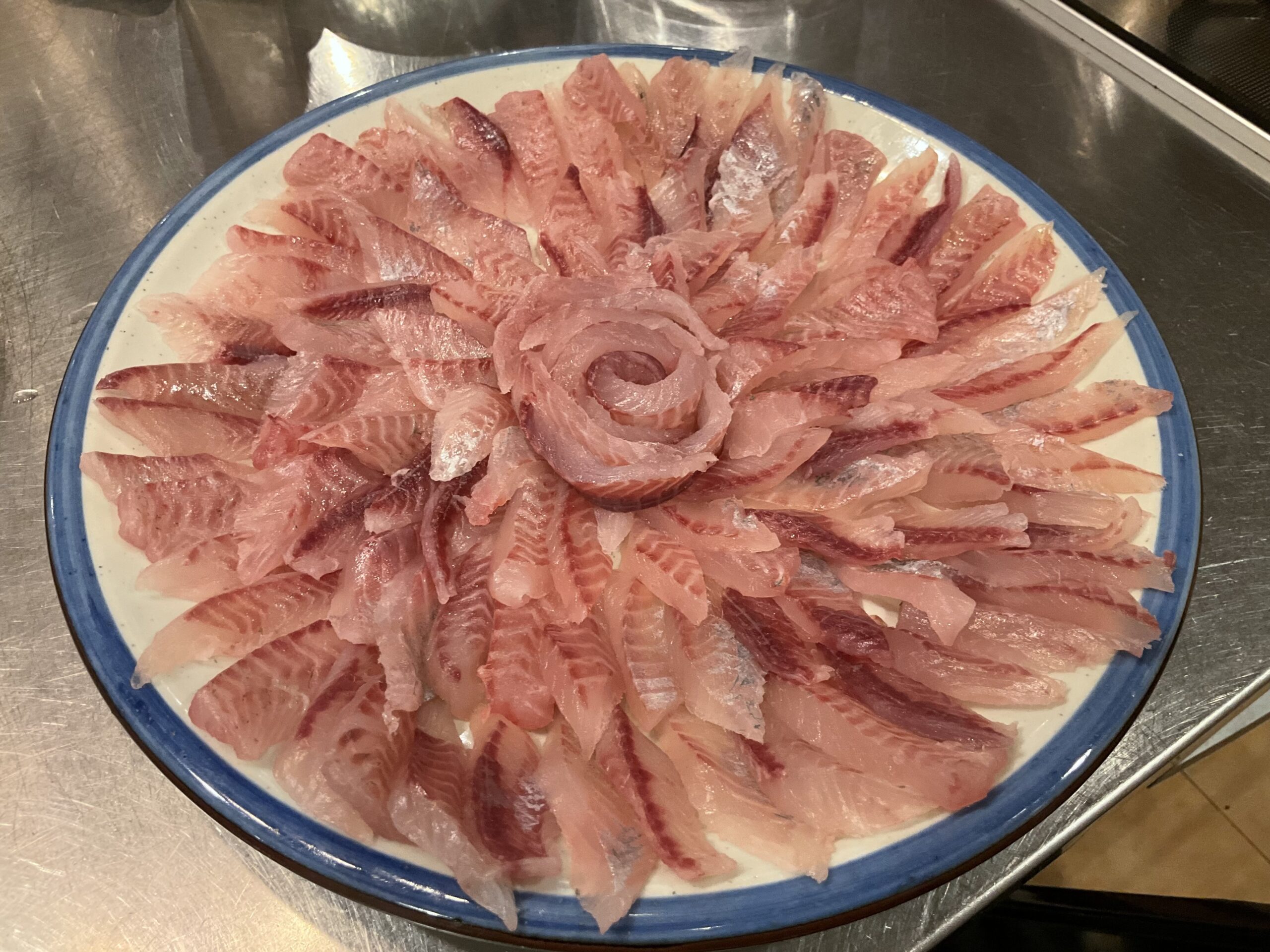 歩かなければ痛みはないので、とりあえず魚を切って夕食の準備。イサキは15匹いた。5人の夕食には十分。一部は趣向を変えてカルパッチョにしてみた。これはこれで美味。