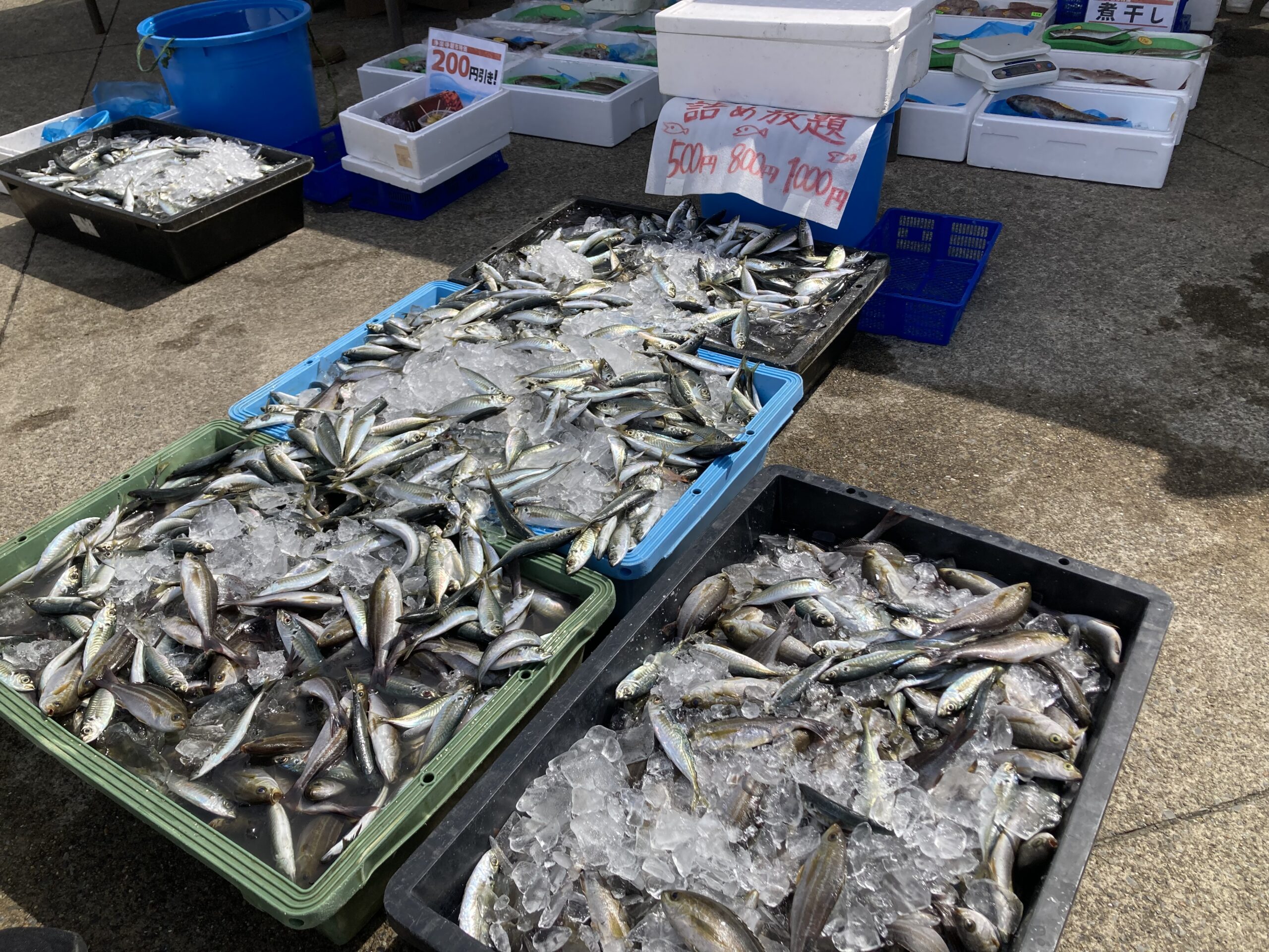 今日も暖かく佐島まで走る。海が穏やかになったためか、魚屋の店先が賑やか。浄楽寺朝市の魚屋さんに詰め放題の魚がたっぷり。小アジは面倒だけど、今日はイサキの20センチ以上あるやつがいたので、これなら刺身にできそう、ということで500円の袋に詰めて取り置きをお願い。