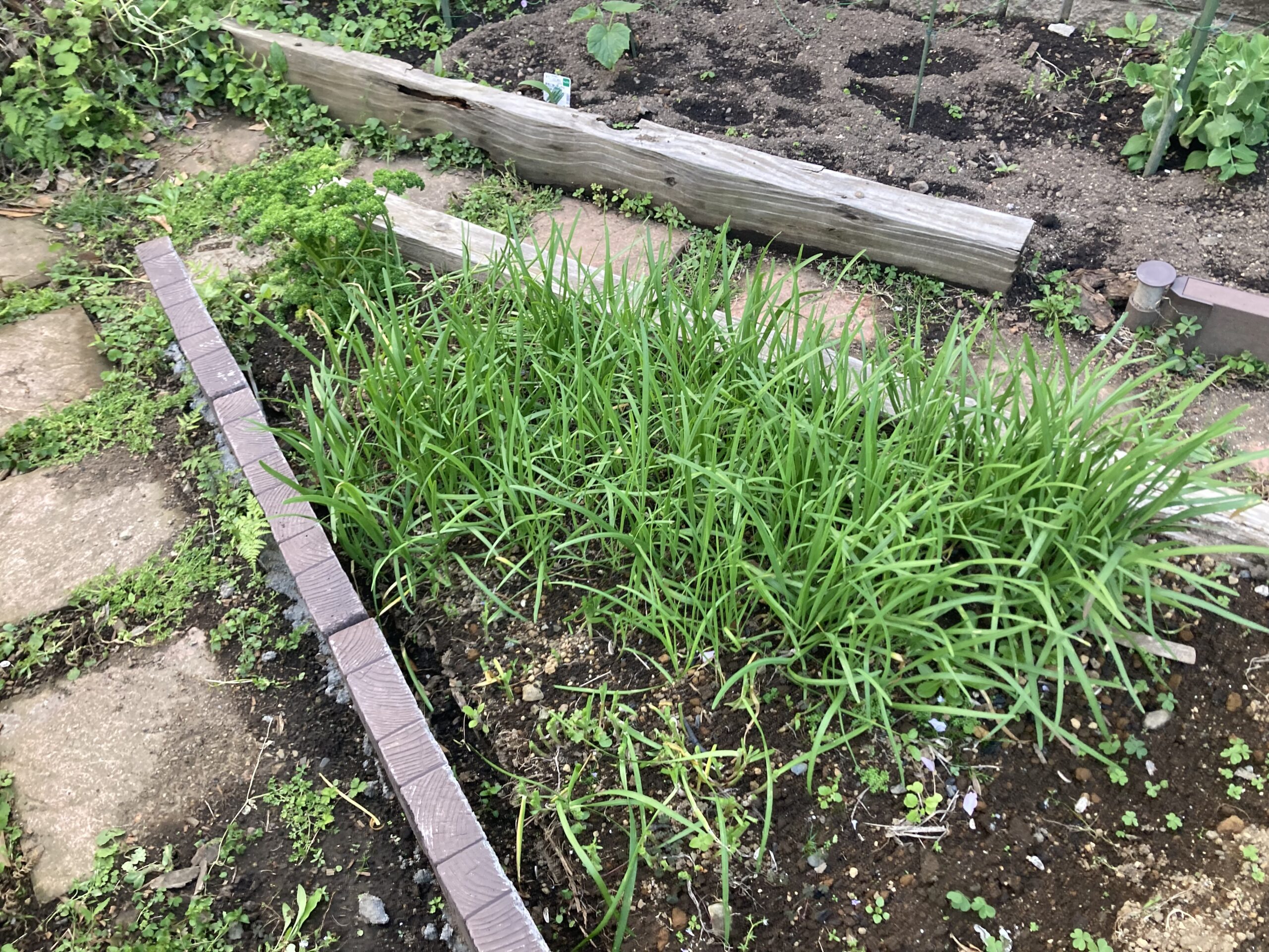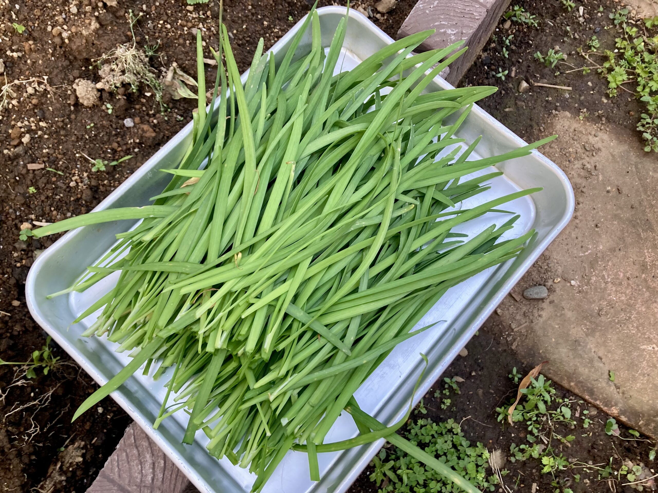 庭の畑に今年植える夏野菜はまだ決めてないのだけど、とりあえず、植えっぱなしのニラがまたよく茂っているので、夕食用に刈り取り。刈り取ったらまた勝手に生えてくる便利な野菜。