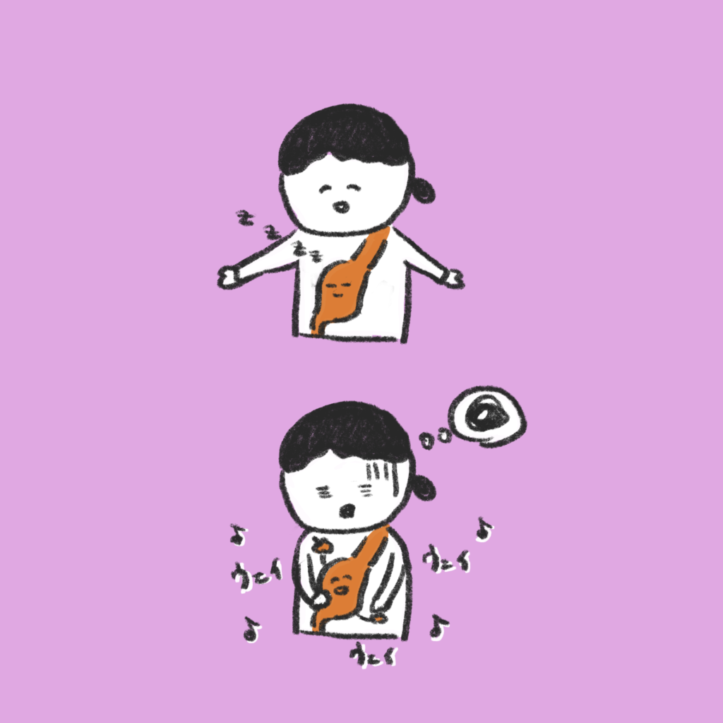 「ファミレスに行ったとき、ドリンクバーをとっても、足がよろつくから席に戻る道の間で飲み物をこぼしてしまう。だから、こぼさないように飲み物を飲みながら歩くと、余計にこぼすしてしまって、そのなくなった分を補充しにまた行ったり来たりしてるのよ。」と話していて、可愛かった。
