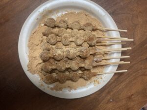 冷蔵していただんごを、お湯に1分浸けてやわらかくして、きな粉にまぶして食べる。やわらかくてあっという間になくなってしまった。