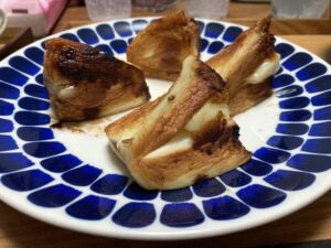 それを4等分にして切り込みをいれ、チーズを挟み、バターで焼き、醤油で焦がすと、はんぺん山脈となった。ゆるやかな険しさがある。シンプルにおいしかった。