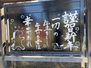 事務所に向かう途中にある寺の回覧板には、新年から「一切の生きとし生ける者は幸せであれ🐴」と書かれている。