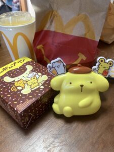 姪にまんま布教されてしまったポムポムプリンがマクドナルドのハッピーセットに登場したとのことで、朝マックでいただく。