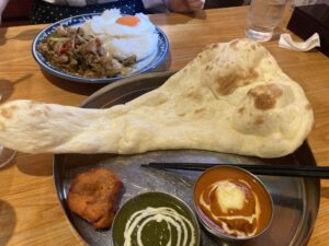並ばずに入店、そしてナンおかわり自由・ドリンク付き・カレー2種で990円とかなり良心的で満腹でおいしかった。