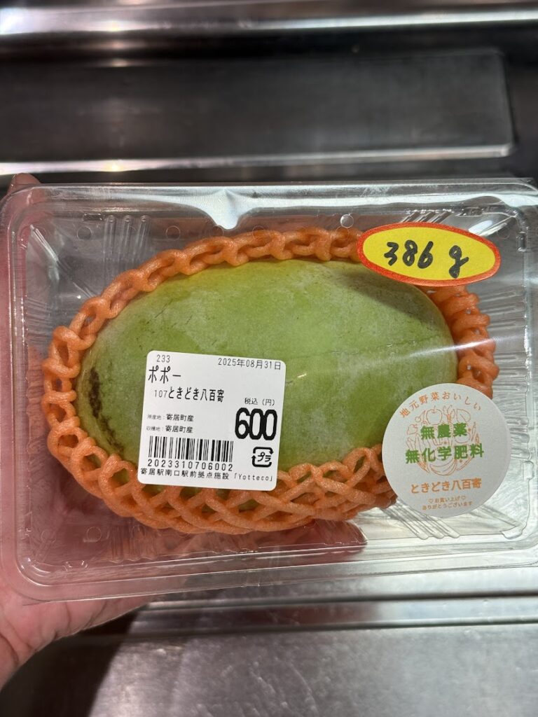 存在は知っていたけど食べたことのない「ポポーの実」を購入し持ち帰る。