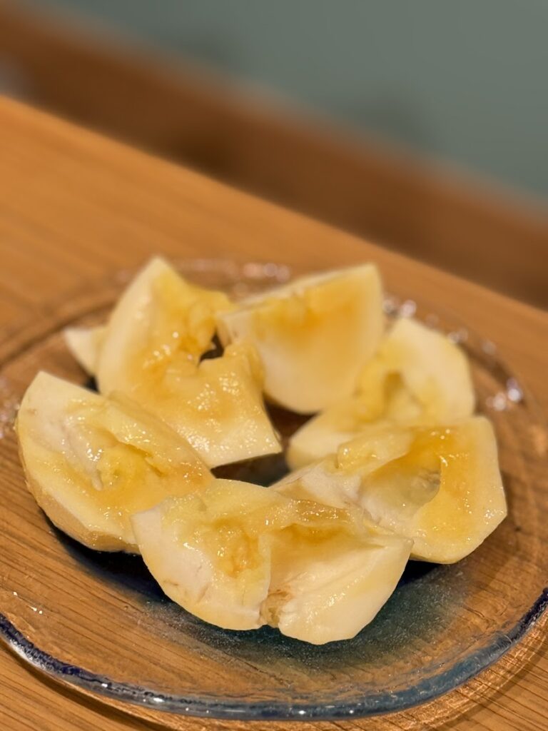 マンゴーやバナナをイメージする味と聞いていたけど、熟した柿にマンゴスチンを足したような味に感じた。