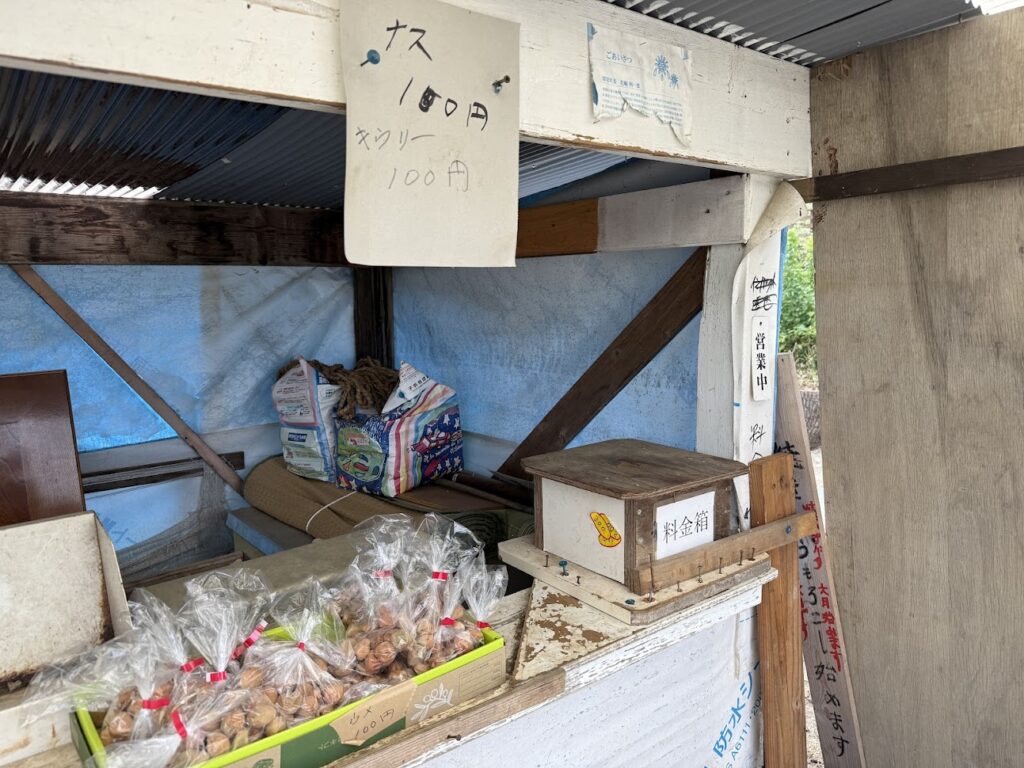 怪しい無人販売店で自家製梅干しを購入。
