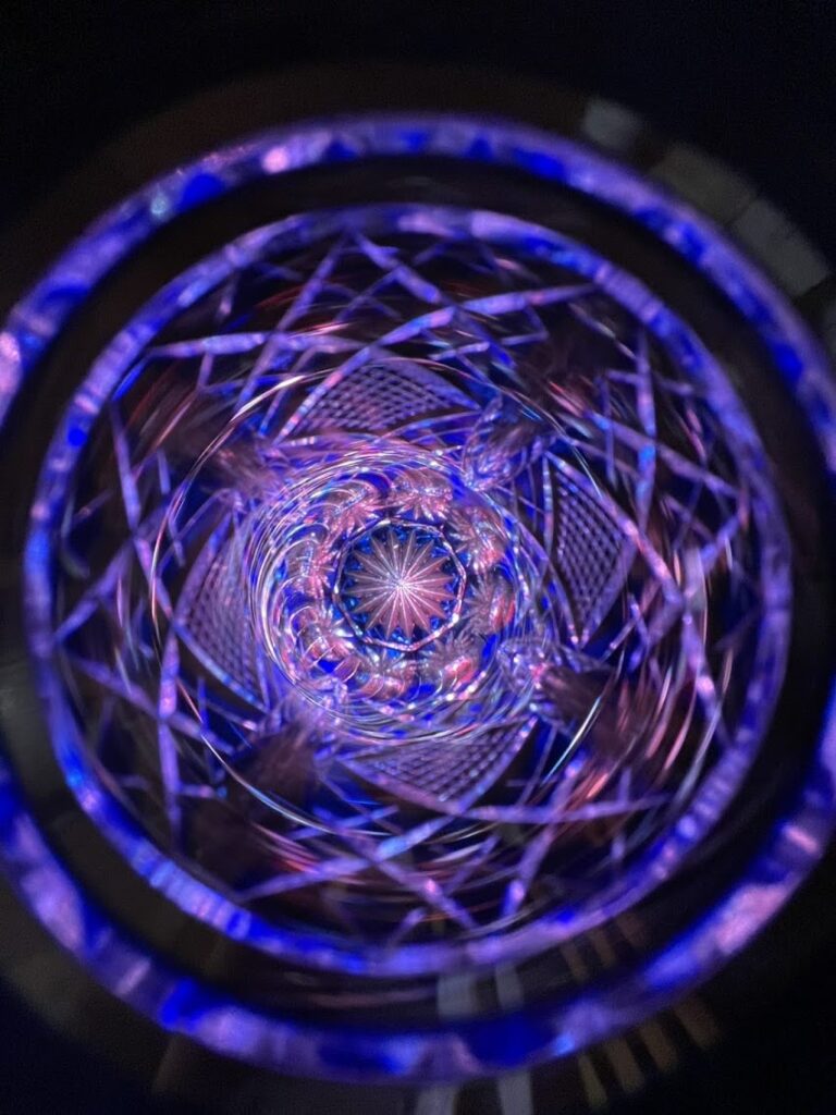 光の透過や色の重なりにテンション爆上がり。タンブラーを重ねて「魔法陣みたい!」と大興奮。