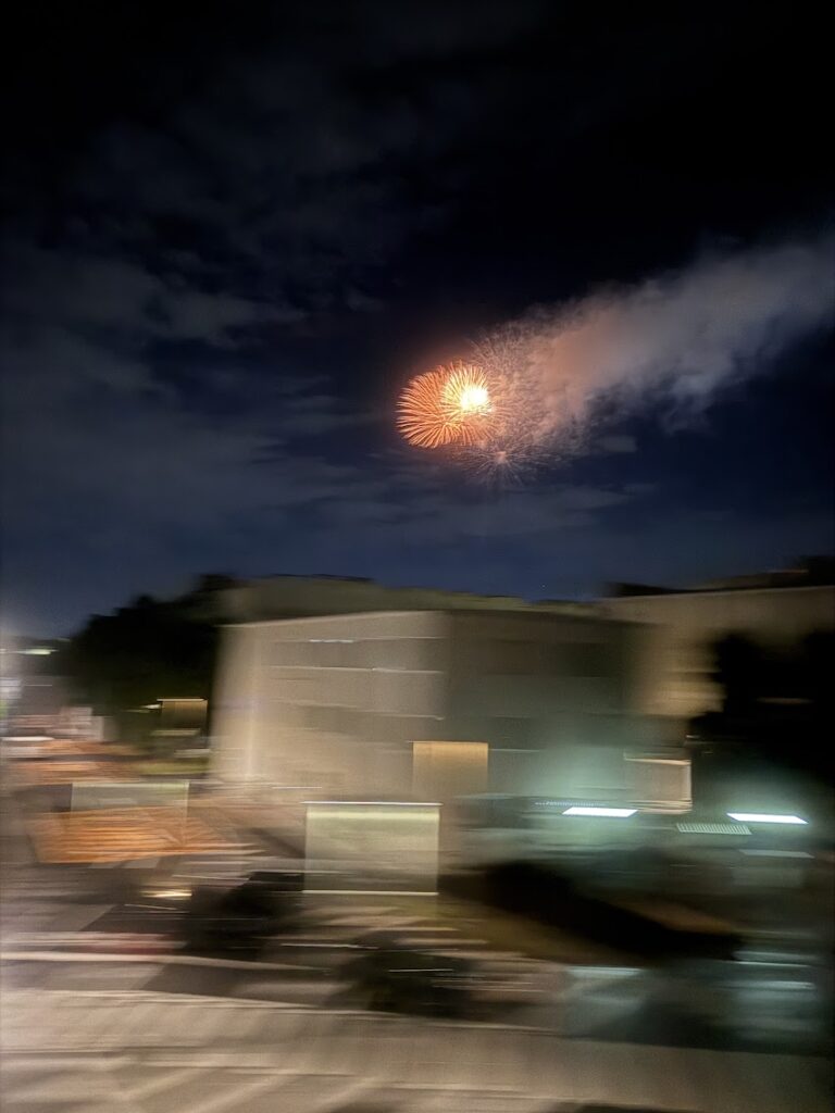 食後に長女とふたりでディズニーリゾートラインに乗り、何となく一周していると花火が上がった。