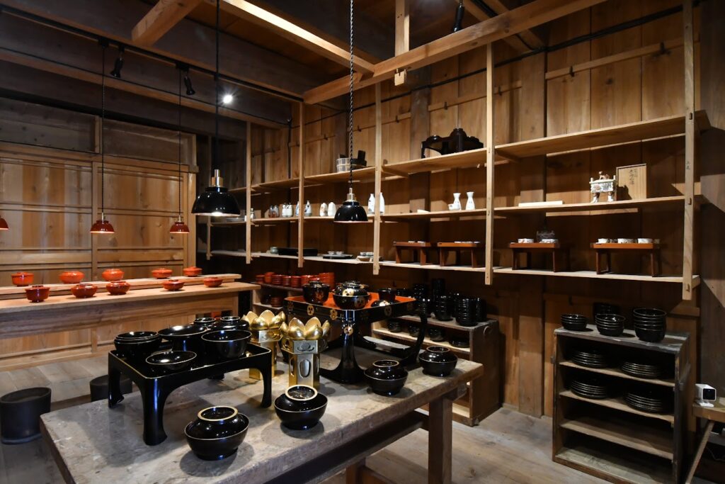 震災後に蔵からレスキューされた歴史ある輪島塗や九谷焼を、お土産として持ち帰っていただけます。 店内には、明治・大正時代につくられた100年以上の器も並びます。国産漆を用い、職人の手で仕上げられ、代々受け継がれてきた逸品たちです。
