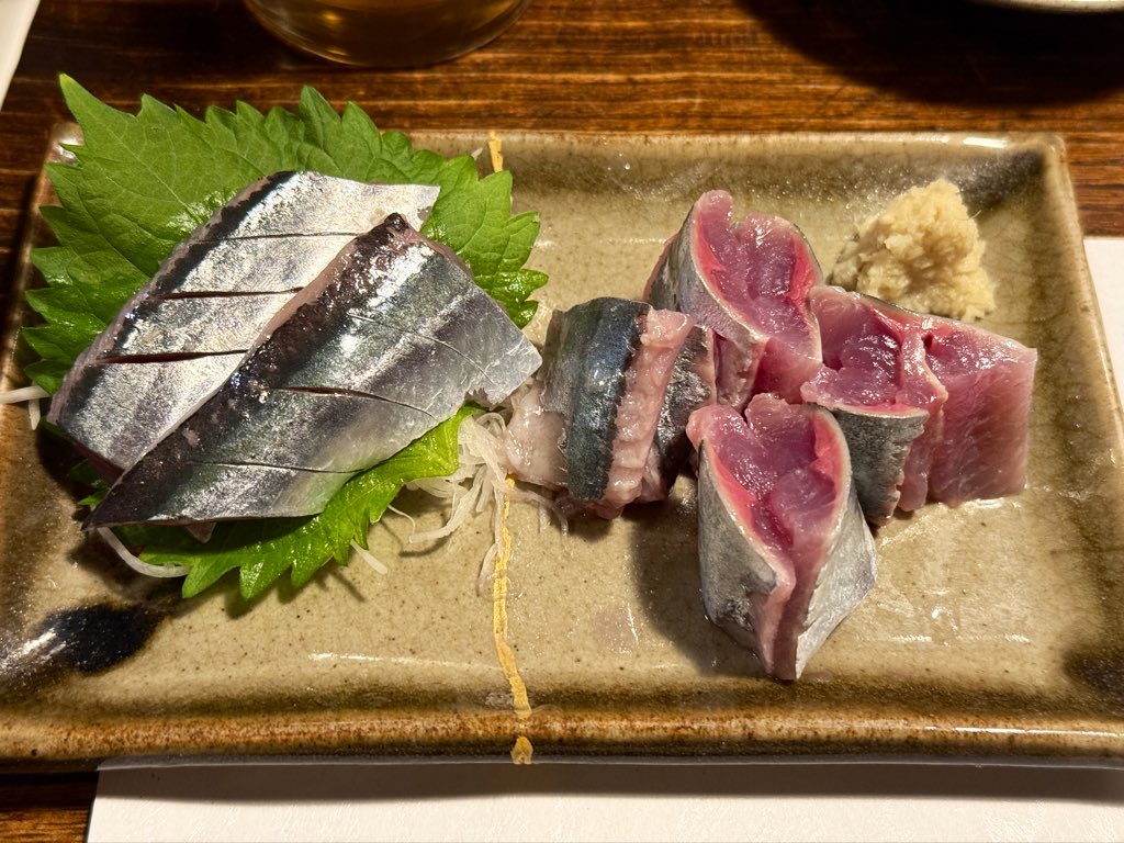秋刀魚の刺身に自家製のかまぼこ。