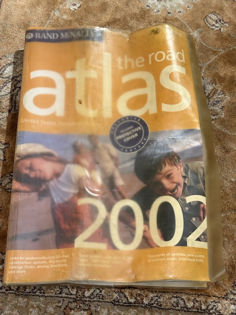 2002年、アメリカ一周ツーリングをした時に使った地図。テントを積んで毎日走った。