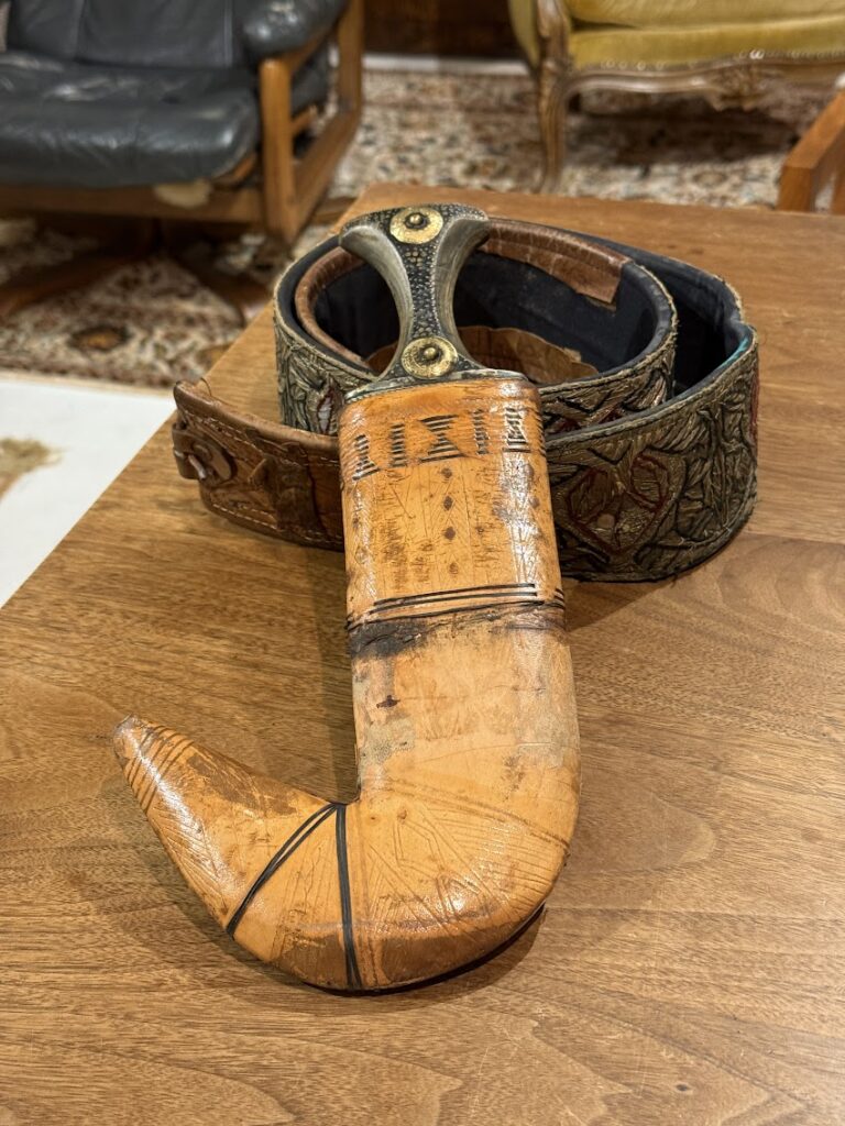 これはイエメンで買ったジャンビーヤ(ダガー)。今はもう行きにくい国になってしまった。これは飾ろう。