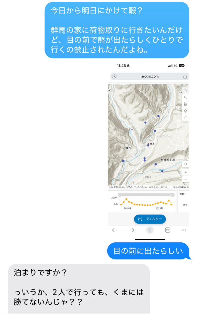 季節の変わり目には尾瀬の別荘に荷物を取りに行かなければならないのだが、残念ながら別荘前でクマの目撃情報があった。