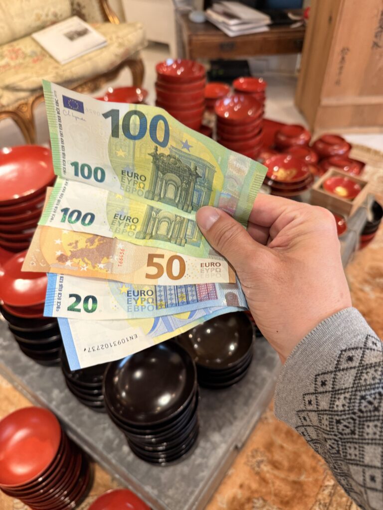 日本円を持っていないということでユーロでお支払いをいただきました。