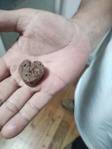 私からの結婚記念日プレゼントは、しっとりチョコの中に入っていたハートのやつ。当たりだ!と思ってだんなさんにあげたけど、後で調べてみたら1袋に10個くらいは入っているらしい。