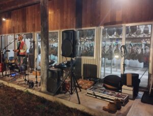 生ハム貯蔵室の前でライブ。シュールな光景。