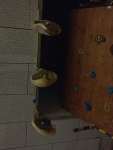 頭上にも生ハム。豚の大腿骨頭がよく見える。いつも車中泊だったけど今回は会場の講堂で、生ハムの下で広々寝た。