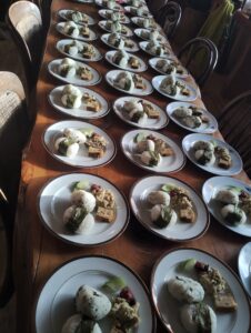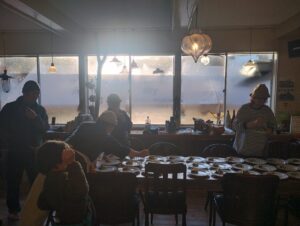 今朝。朝日が差し込む中朝食の準備風景。この女性陣たちが動き回る光景が美しくて毎年の楽しみ。