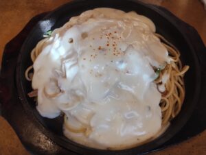 まずは2時間かけて大館市でランチ。えんとつと言う名のお店の通り、本当に立派なえんとつがあった。元は麹屋さんだったそう。
