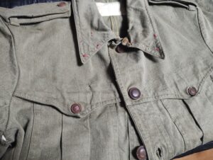 今日見つけたのは1940年代とおぼしきジャケット、2900円。サイズ表記などは消えているものの、タグや生地感、内部の作り、ボタンなどからユーロのミリタリーだろうと推測。私でジャストサイズだったので男性だとかなり限られてしまうものの、値段が値段だったので迷わず購入した。