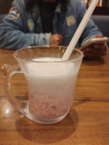 頑張ったごほうびに、だんなさんが苺ミルクを頼んでくれた。