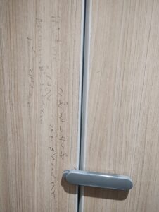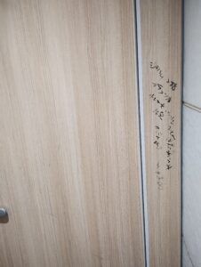 屋内のトイレがこれだし、管理側も消す気がない。去年もあった落書き。