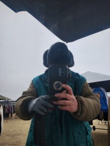 今日はアメリカ空軍B9B飛行帽を被っていて正解だった。セリアの指ぬき手袋では防寒にならず、ずっと軍手をしたまま。