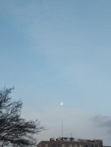 6時半くらいの月。日が長くなって嬉しい。あと2週間でもうお彼岸。
