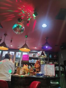 昭和スタイルのスナックが楽しすぎて、なんとカラオケも歌ってしまった!が、このミラーボールの光と楽しい大興奮が刺激的すぎたのか、偏頭痛を引き起こすことに(泣)