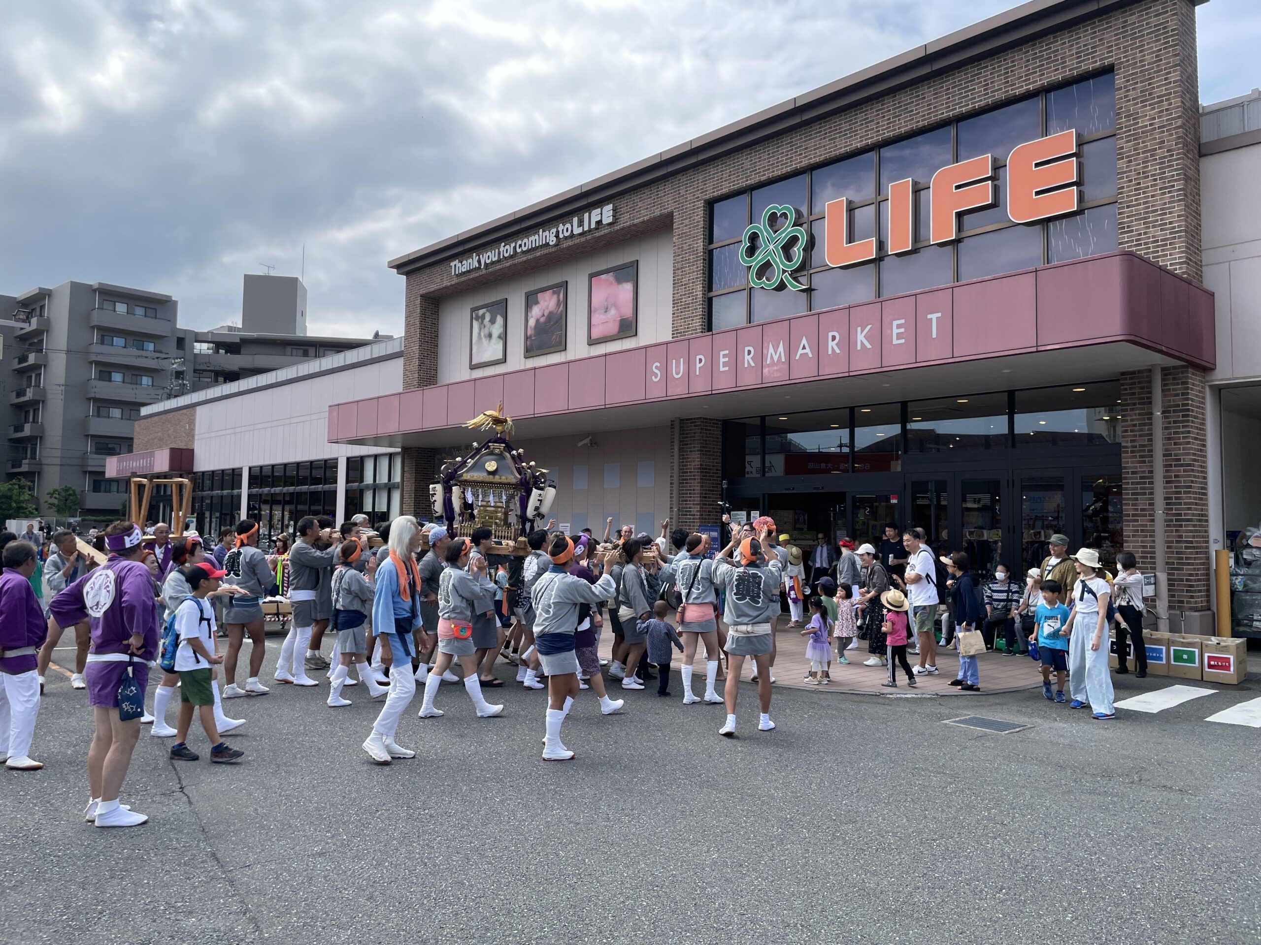 日曜、相変わらずくしゃみ&鼻水が止まらない。くしゃみのし過ぎなのか、背中が痛い。この日は近所の神社の例大祭で複数の神輿が町内あちこちを練り歩いており、ボーイが見たいというのでライフ(スーパー)に神輿が集まる時間を狙って見に行く。私の故郷はやたらとでかい祭が多いのでどうも一般的な?神輿のサイズが小さく見えて仕方ない。